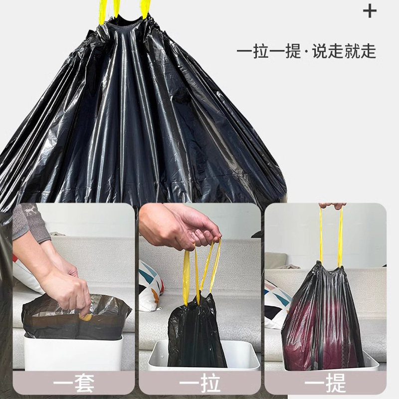 抽绳式垃圾袋家用手提式厨房加厚款实惠装自动收口大号塑料袋