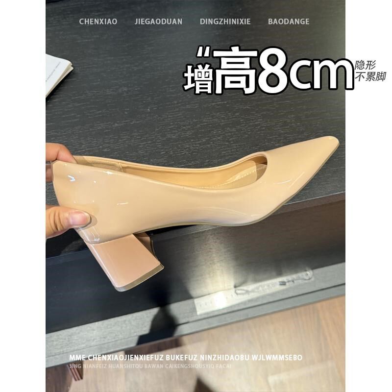 小个子内增高8cm漆皮气质尖头粗跟单鞋女时尚经典浅口高跟鞋女鞋