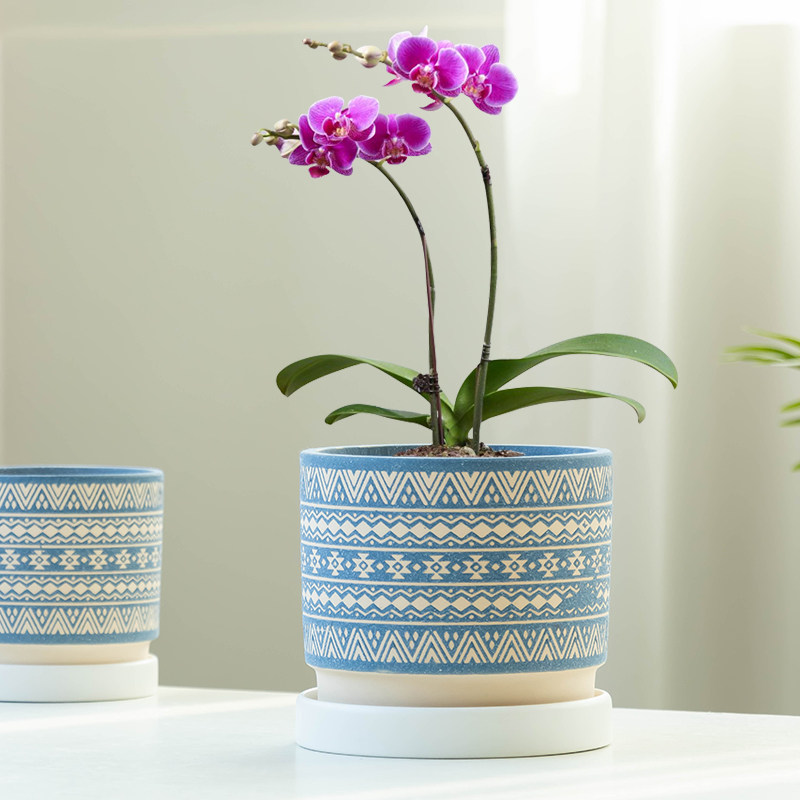 创意蝴蝶兰花盆家用陶瓷阳台绿植花卉高级大口径透气专用盆带托盘