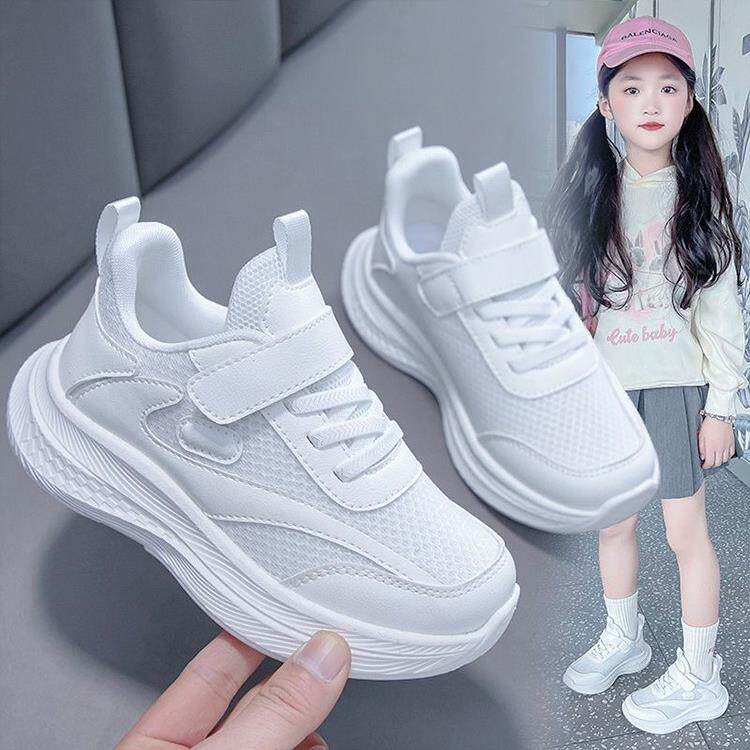 311线报网描述:女童轻便软底跑步运动鞋儿童百搭小白鞋网面