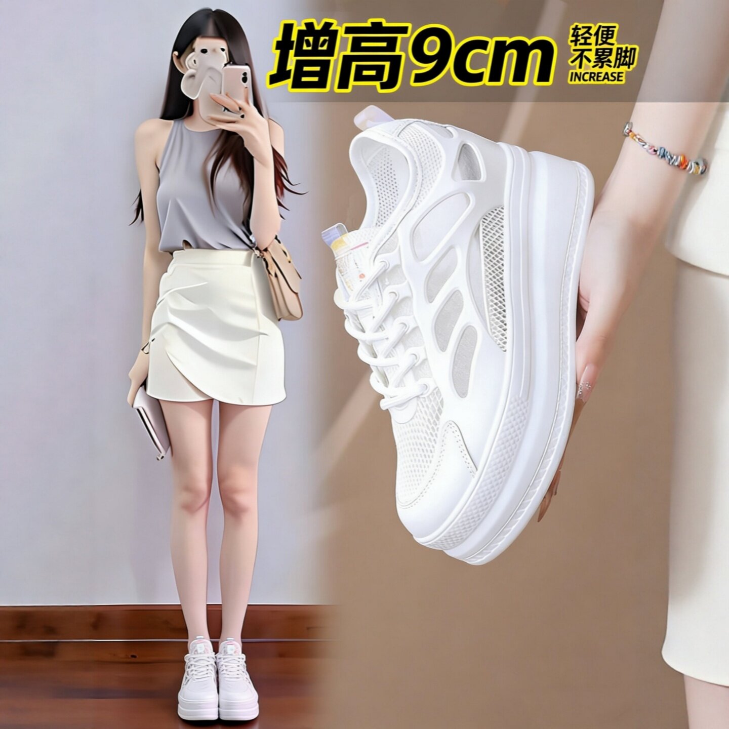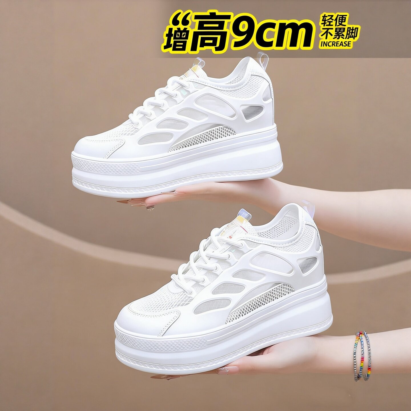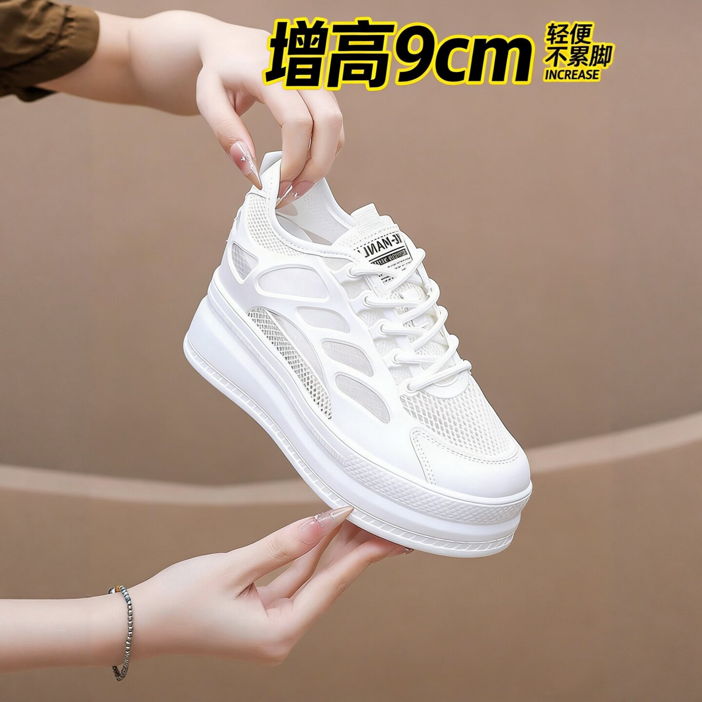 内增高小白鞋女款2026夏季网面透气9cm运动休闲鞋厚底百搭女鞋