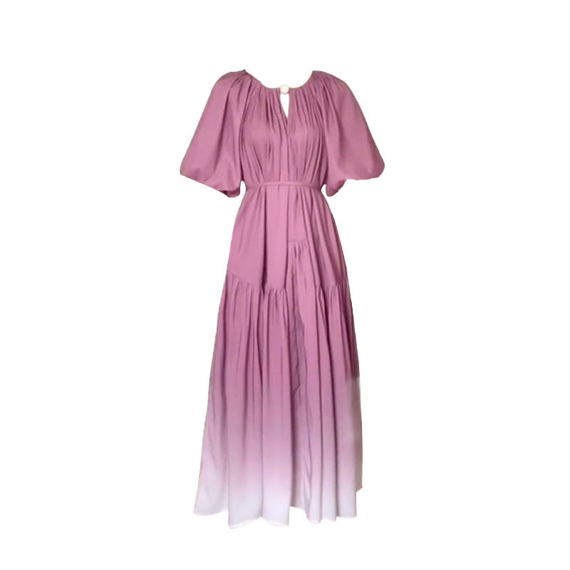 大码胖mm法式名媛风泡泡袖渐变色连衣裙女夏季海边度假显瘦长裙子