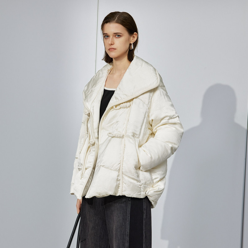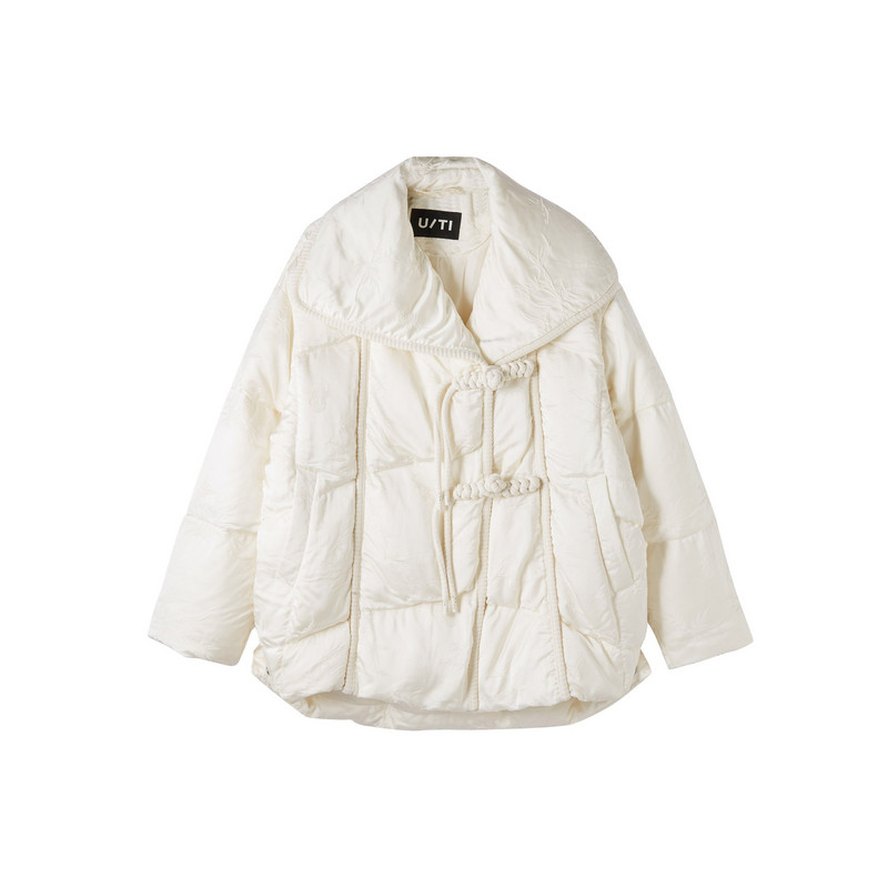 U/TI新中式大翻领羽绒服女轻量云感90白鸭绒外套尤缇2025冬季新款