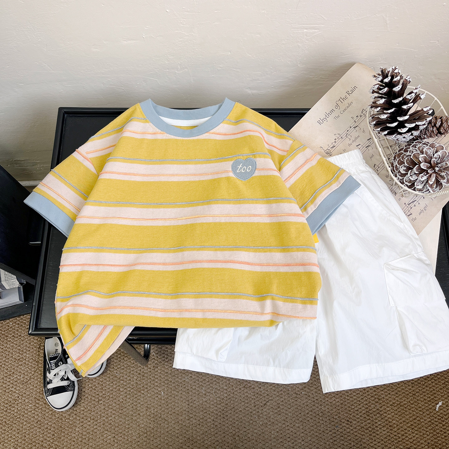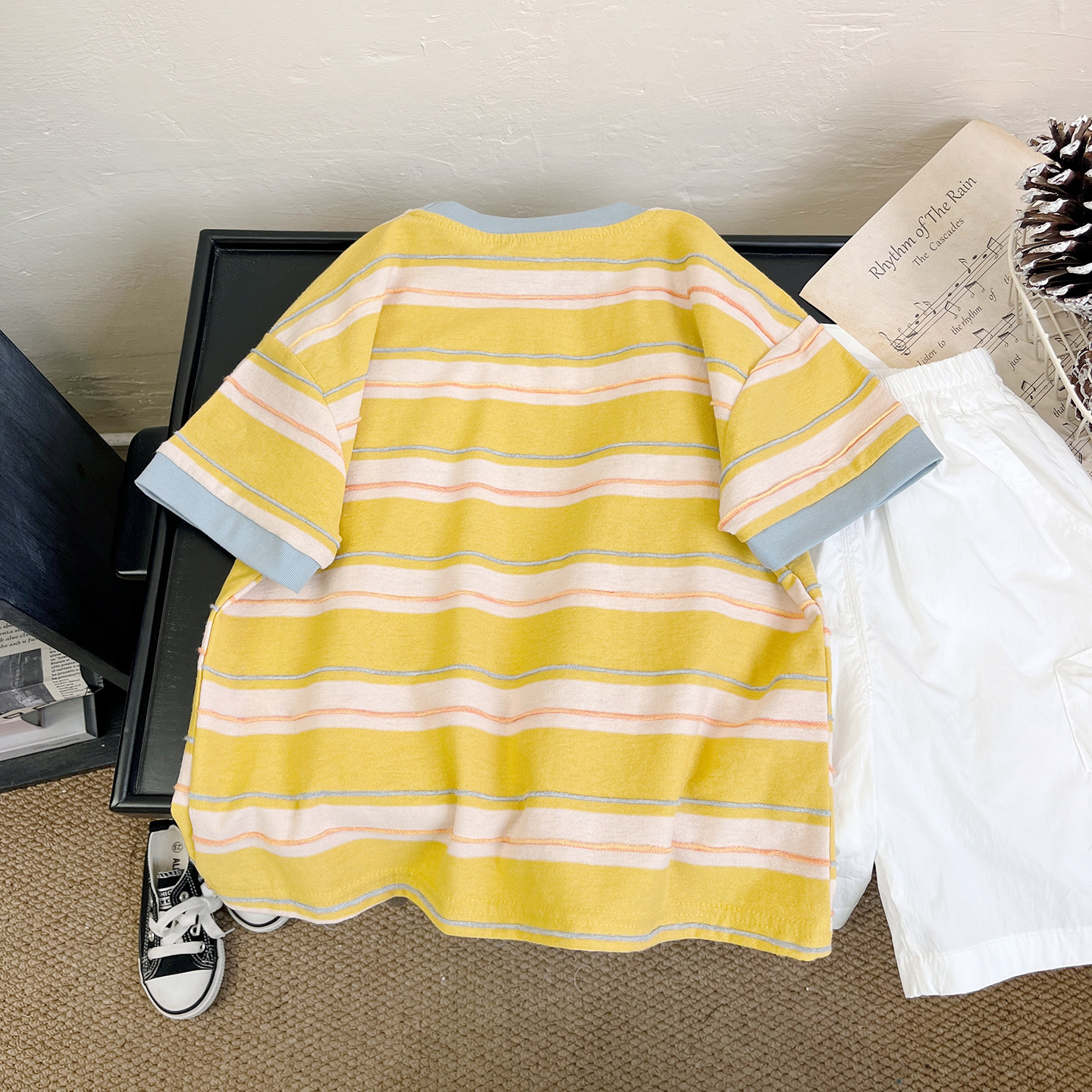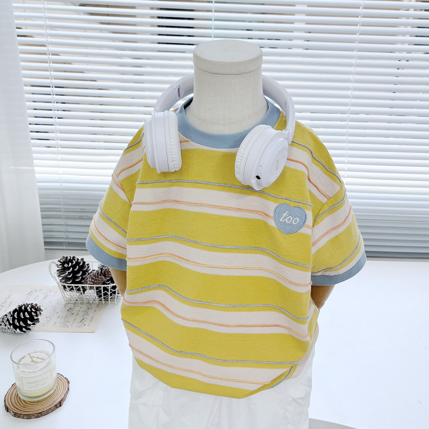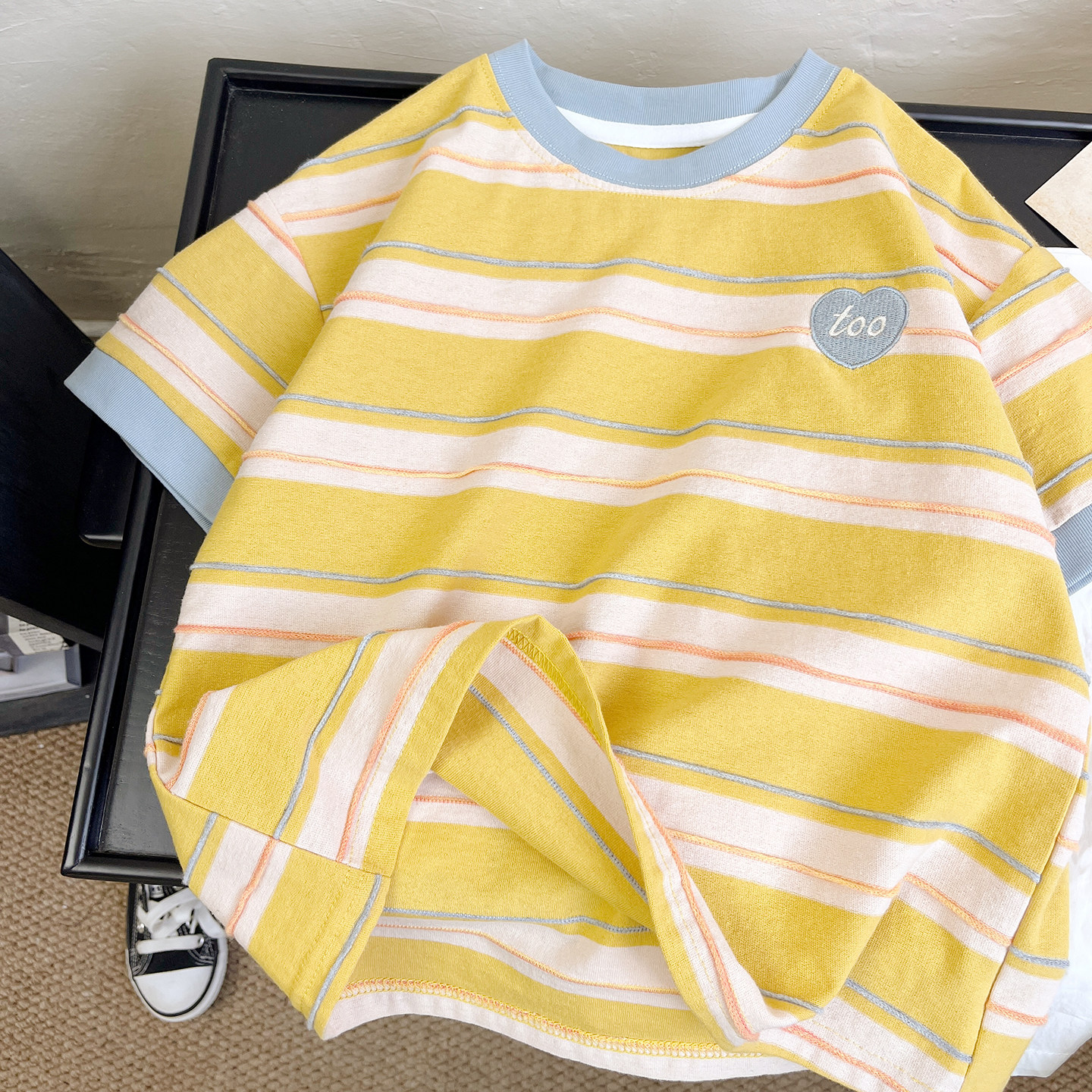 男童短袖t恤2026新款男孩酷帅条纹纯棉a类薄款半袖体恤潮流童装T