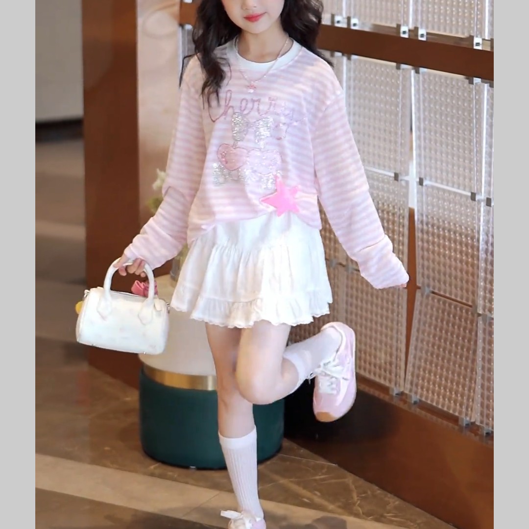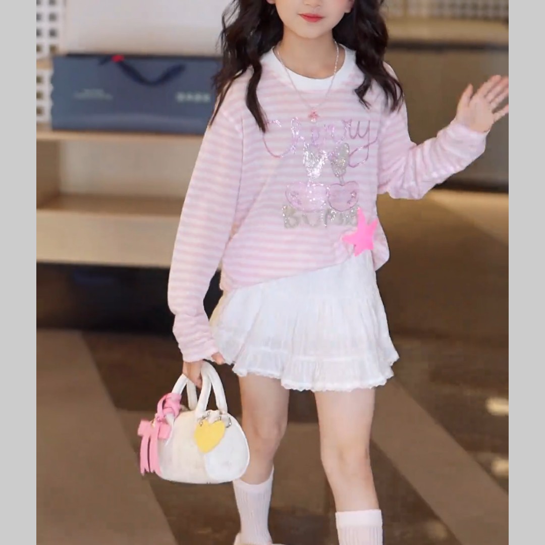 女童T恤条纹长袖薄防晒2026夏季新款中大童上衣韩版洋气公主套装