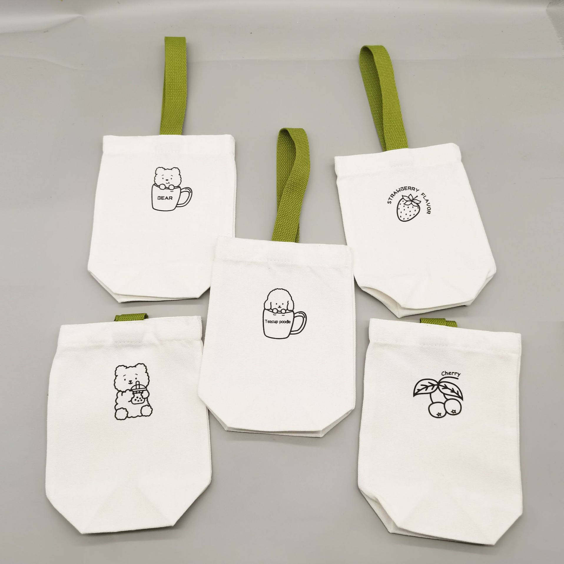 帆布水杯保护套便携式奶茶袋 可爱卡通手拎袋实用保温水杯手提袋