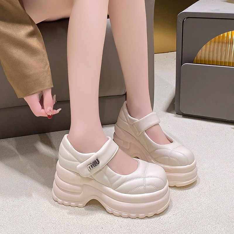 2025新款玛丽珍婚鞋女10cm小个子全牛真皮厚底内增高休闲松糕轻薄