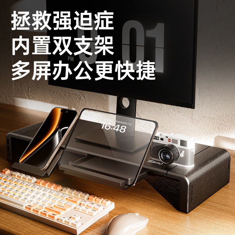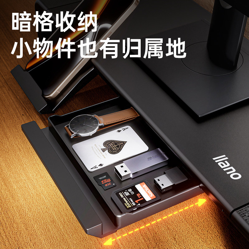 绿巨能显示器增高架台式电脑桌面支架多功能加长可调节架子办公室带拓展坞双屏垫高底座整理置物架支架可折叠