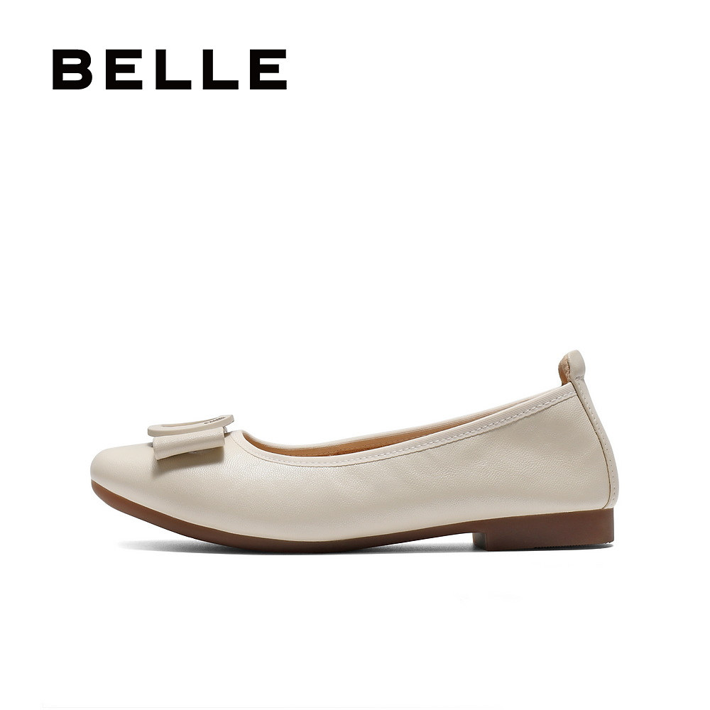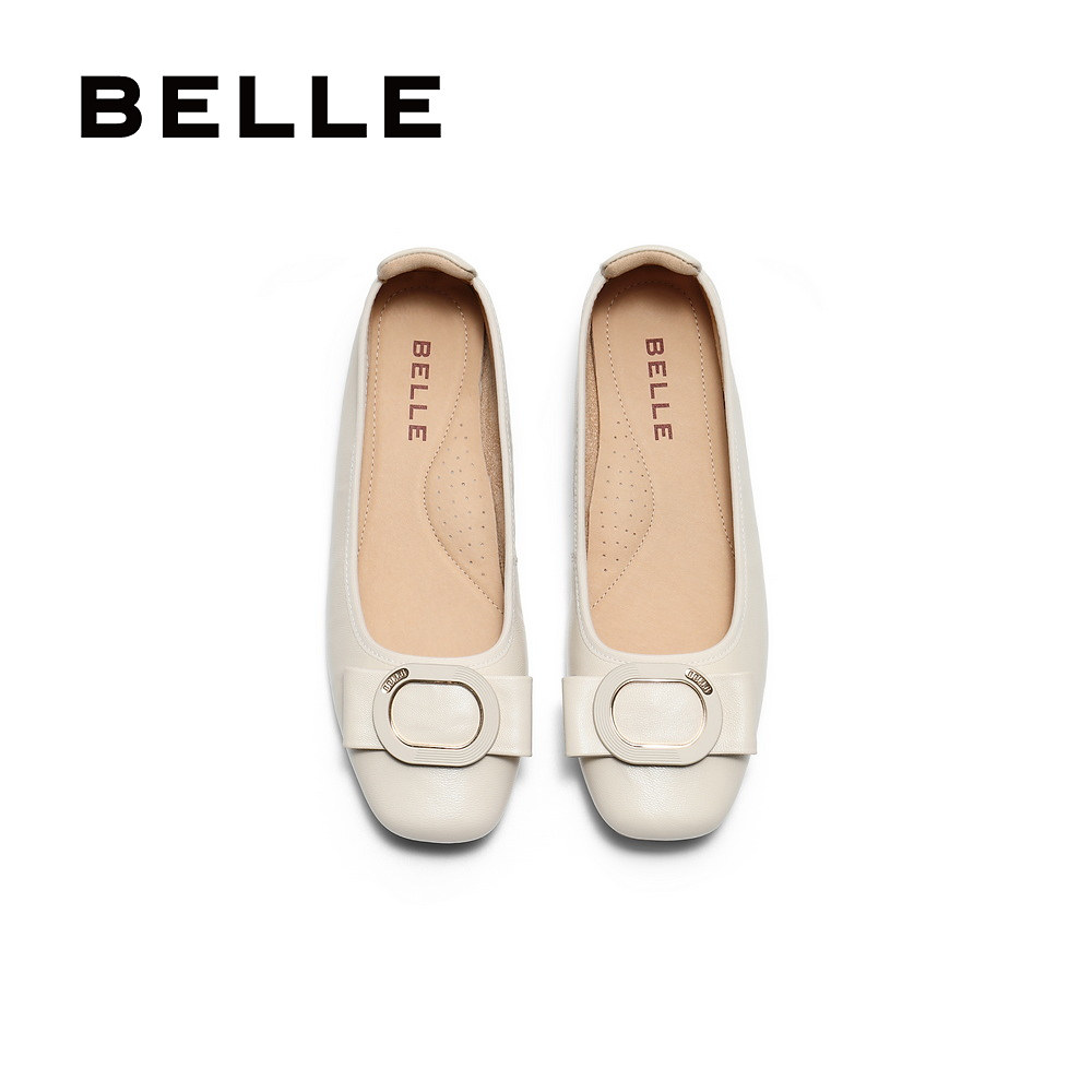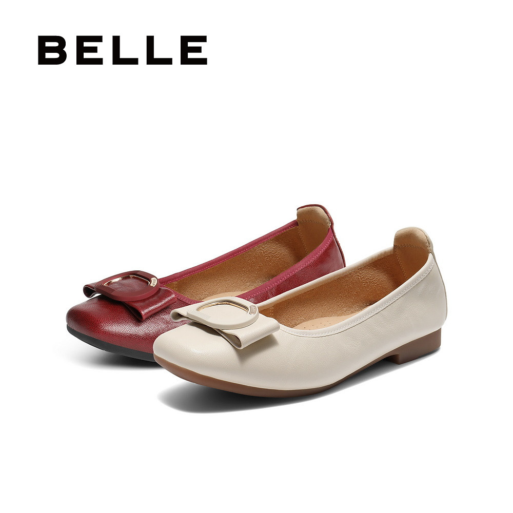 百丽女鞋方扣平底单鞋女鞋子秋季新款羊皮软底蛋卷浅口鞋E3W1DCQ5