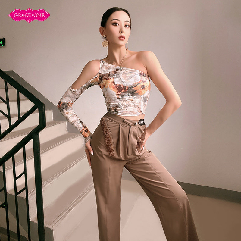 GRACEONE拉丁舞服上衣女成人新款摩登舞服教师裤子练功服网红套装