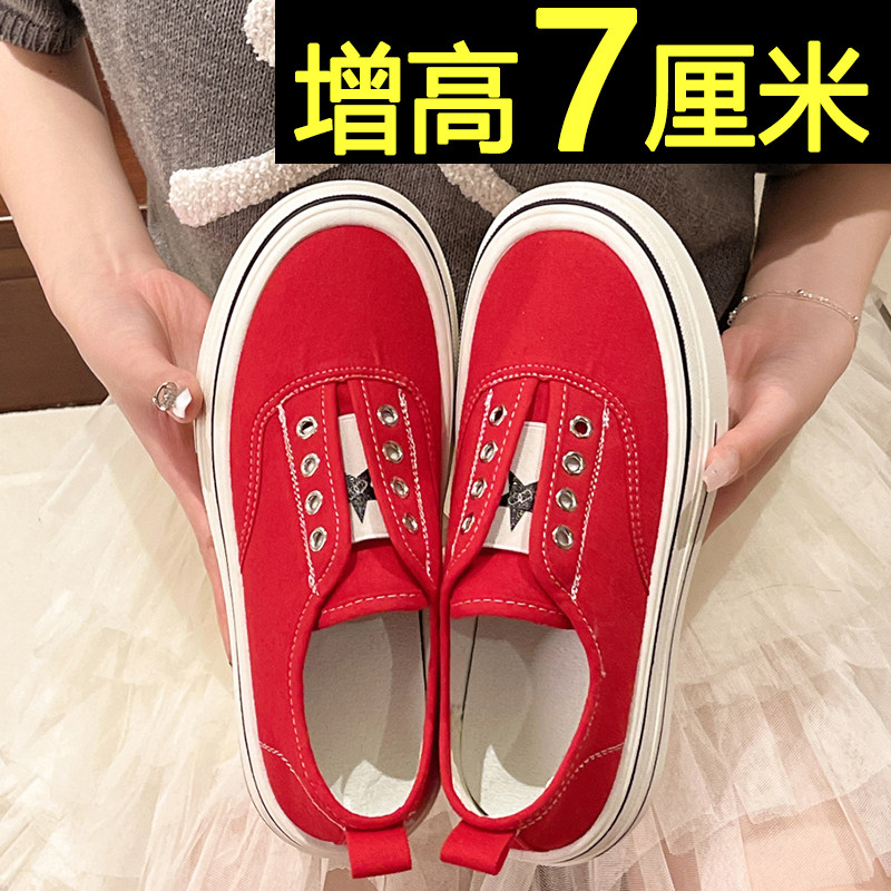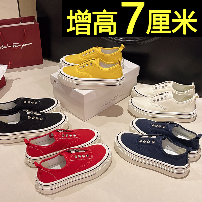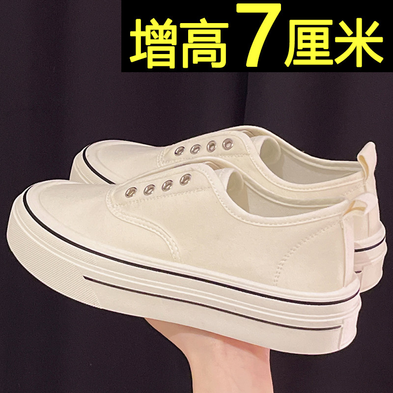 厚底帆布鞋女2026新款夏季薄款透气内增高休闲板鞋百搭运动小白鞋
