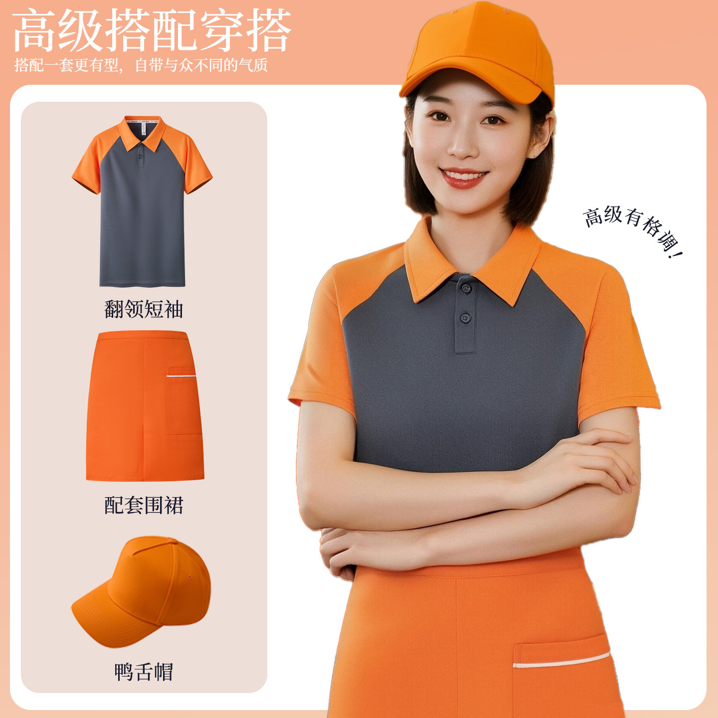 冰丝凉感餐饮工作服T恤定制印logo餐厅饭店服务员短袖polo衫夏季