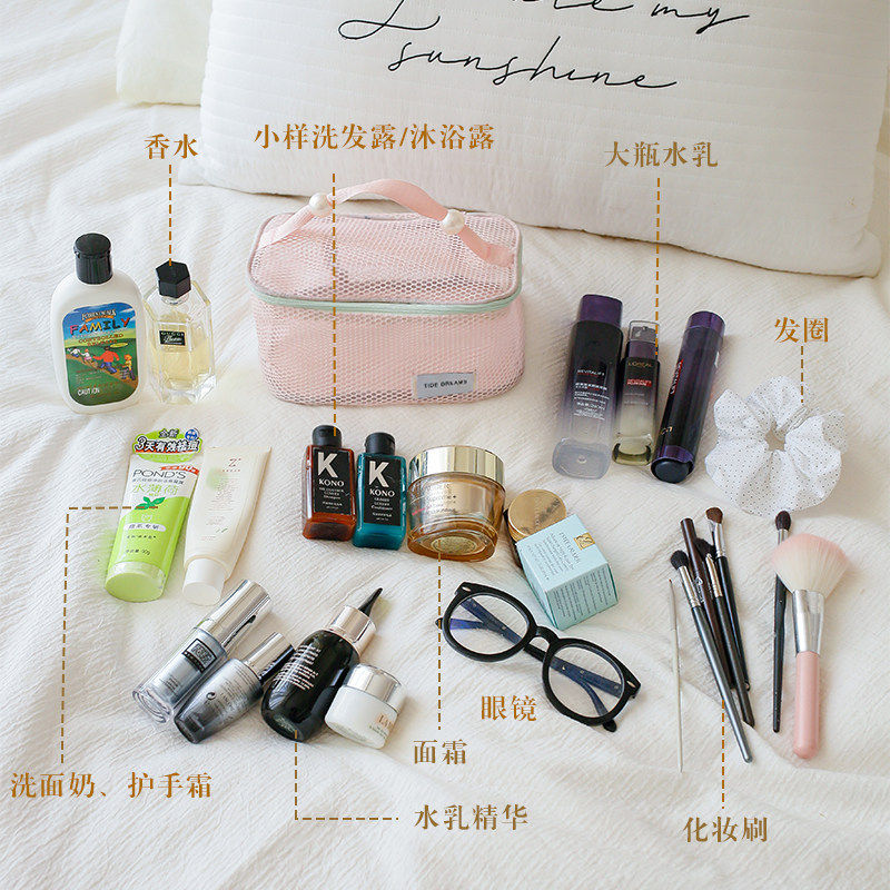 旅行户外多巴胺网格化妆包女便携式小轻便款大容量网纱收纳洗漱包