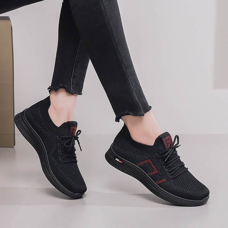 防滑厨房工作鞋女黑色透气运动鞋轻便软底久站不累脚旅游休闲鞋女