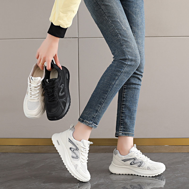 黑色网面透气运动鞋女2026新款休闲防滑软底轻便不累脚上班工作鞋