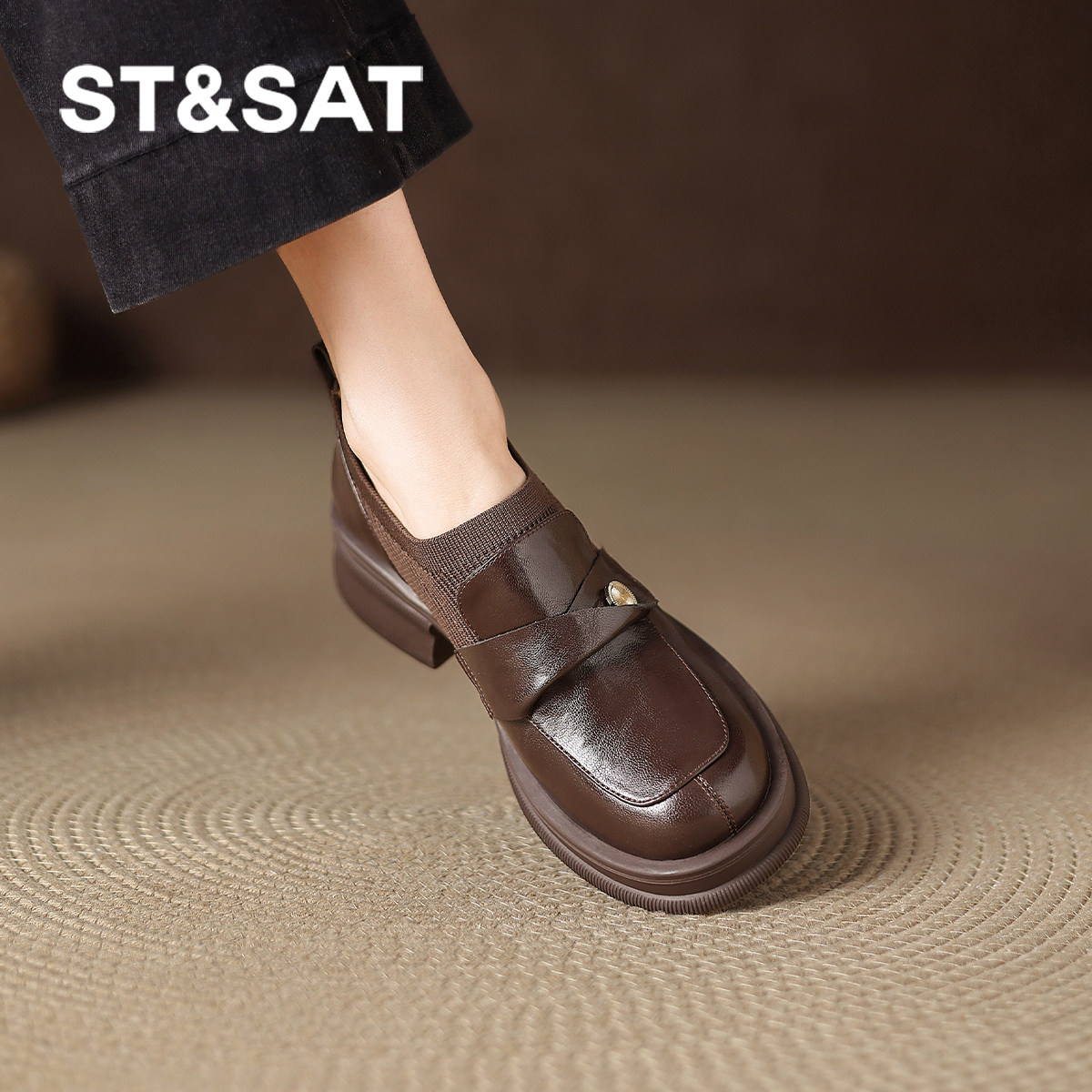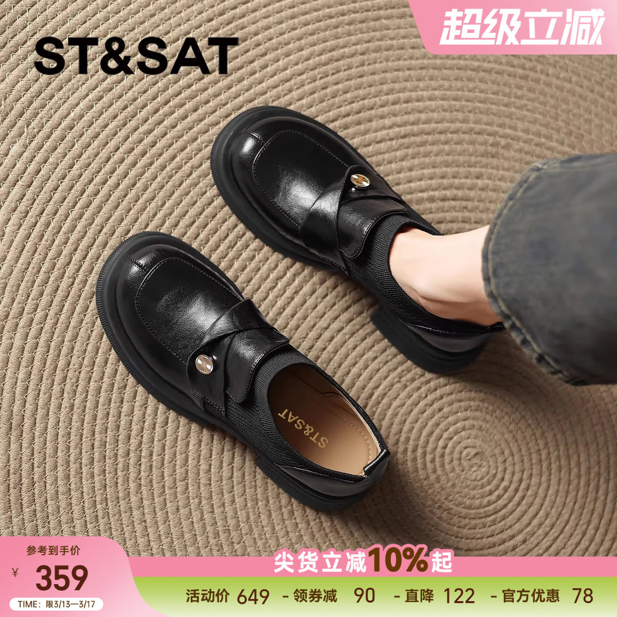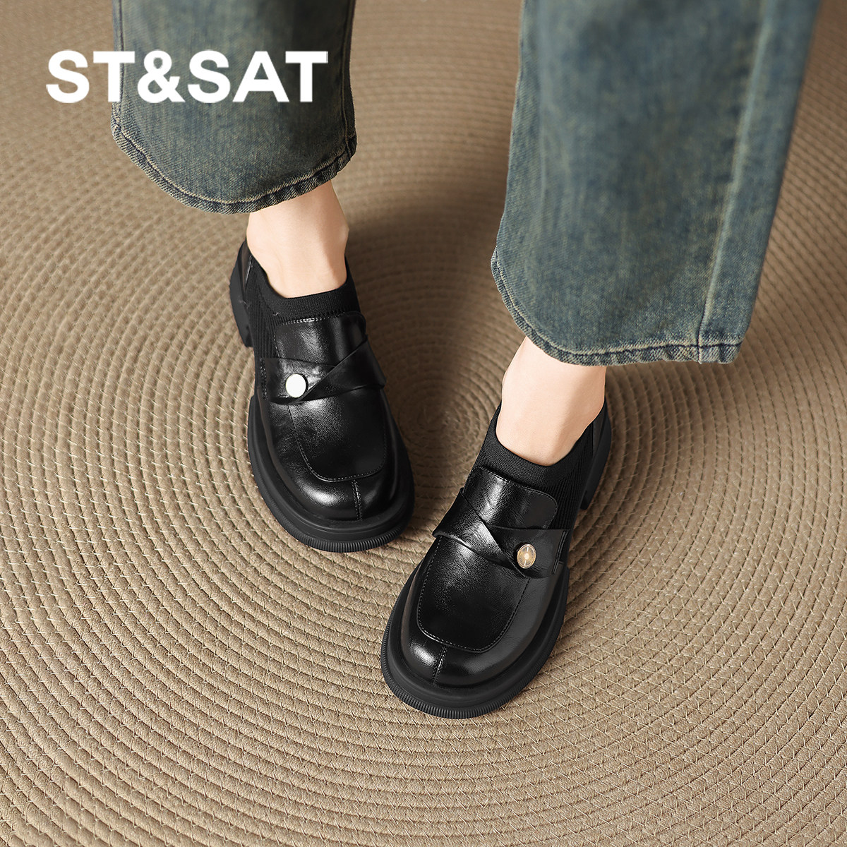 星期六羊皮乐福鞋女新款春季厚底英伦风小皮鞋一脚蹬真皮单鞋