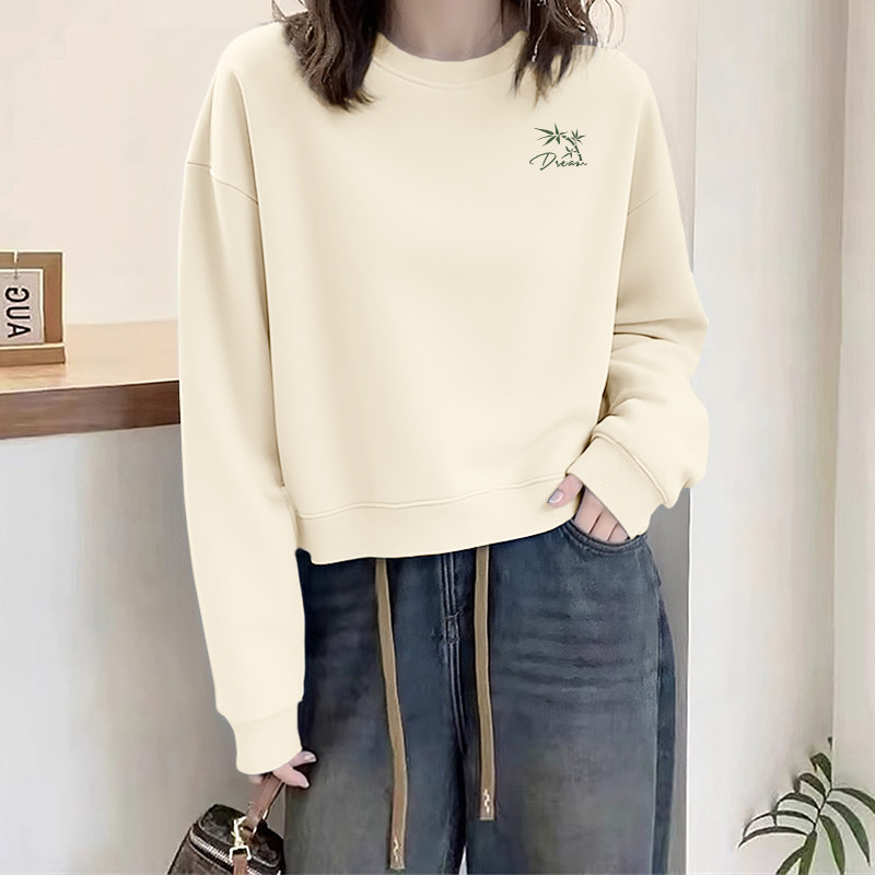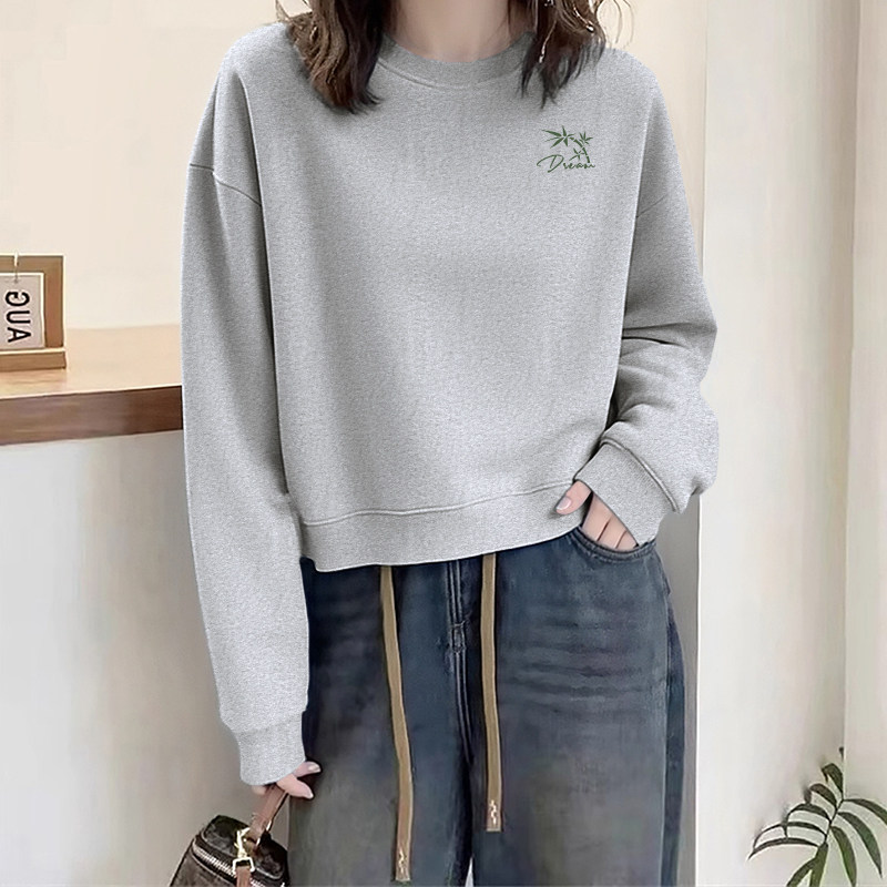回力绿色圆领卫衣女款2026秋季薄款新款慵懒风上衣小个子短款外套