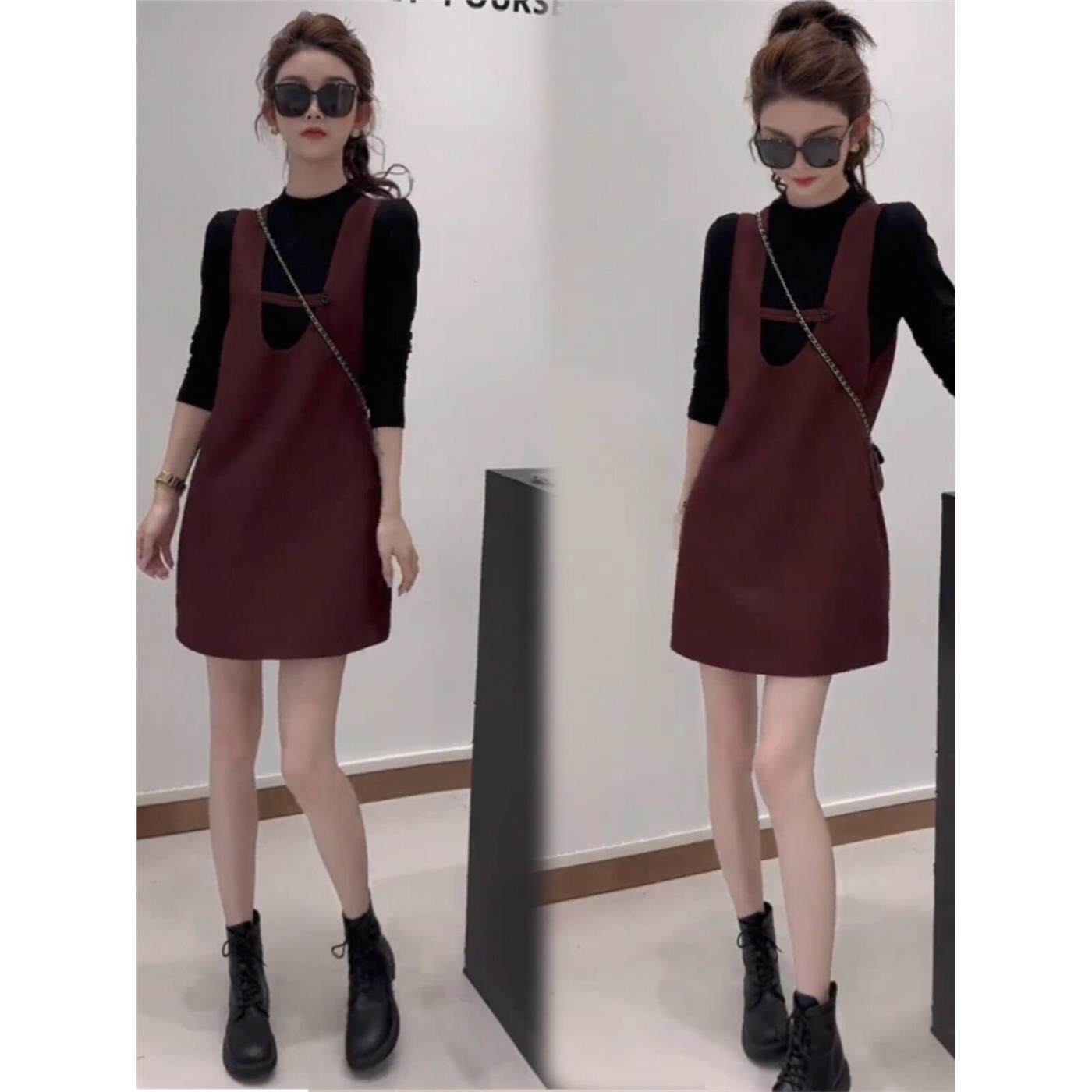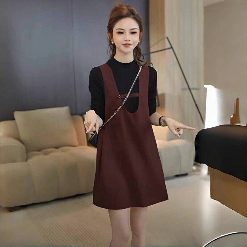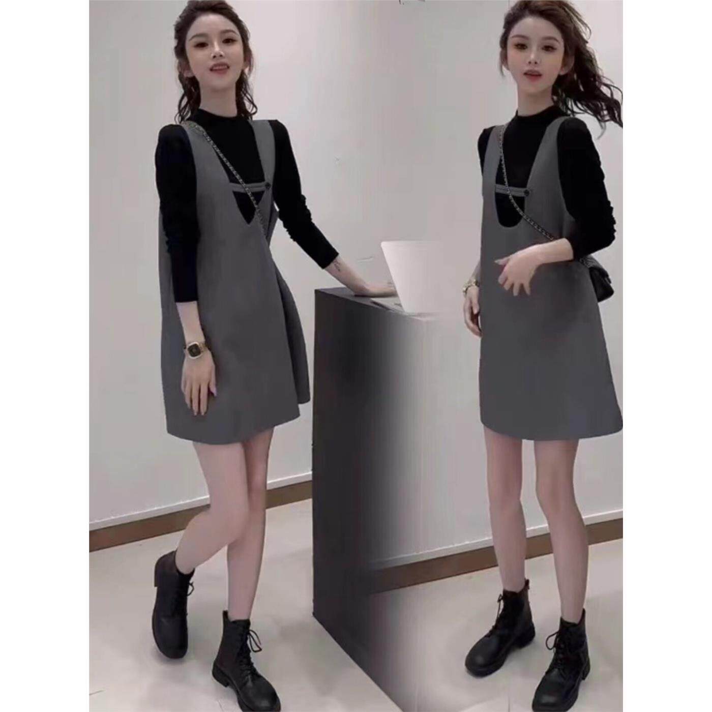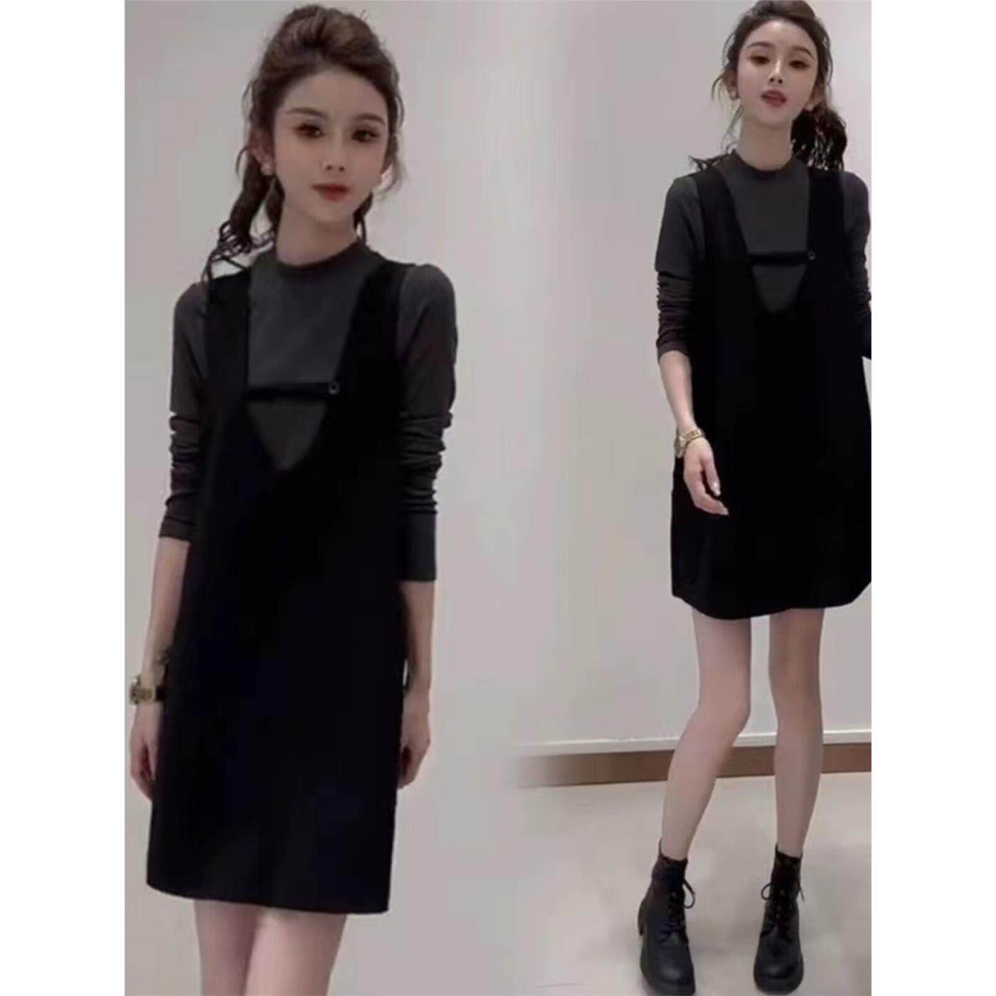 小个子休闲套装背带裙女2026春季新款长袖打底衫背心连衣裙两件套