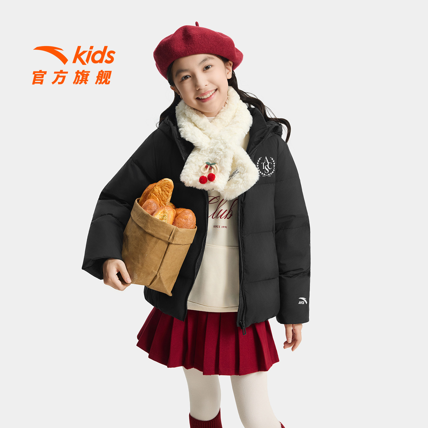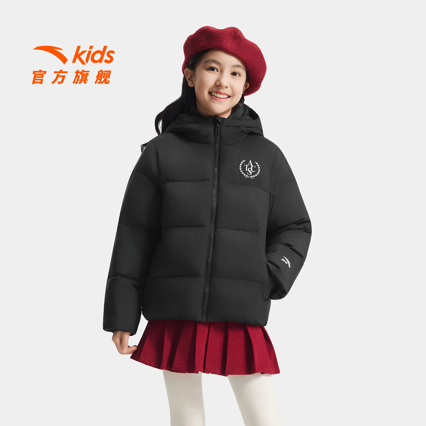 安踏儿童女大童羽绒服2025冬季新款舒适保暖中大童运动连帽面包服