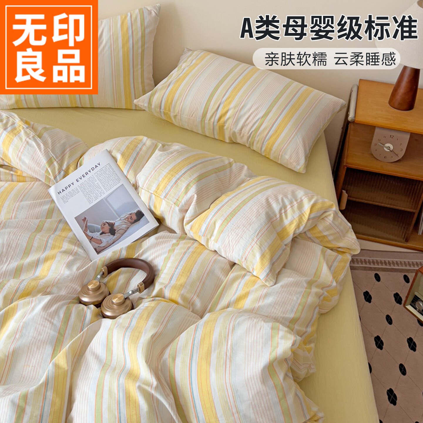 无印良品四件套纯棉全棉四季通用床笠款a类母婴级裸睡床单被套1.8