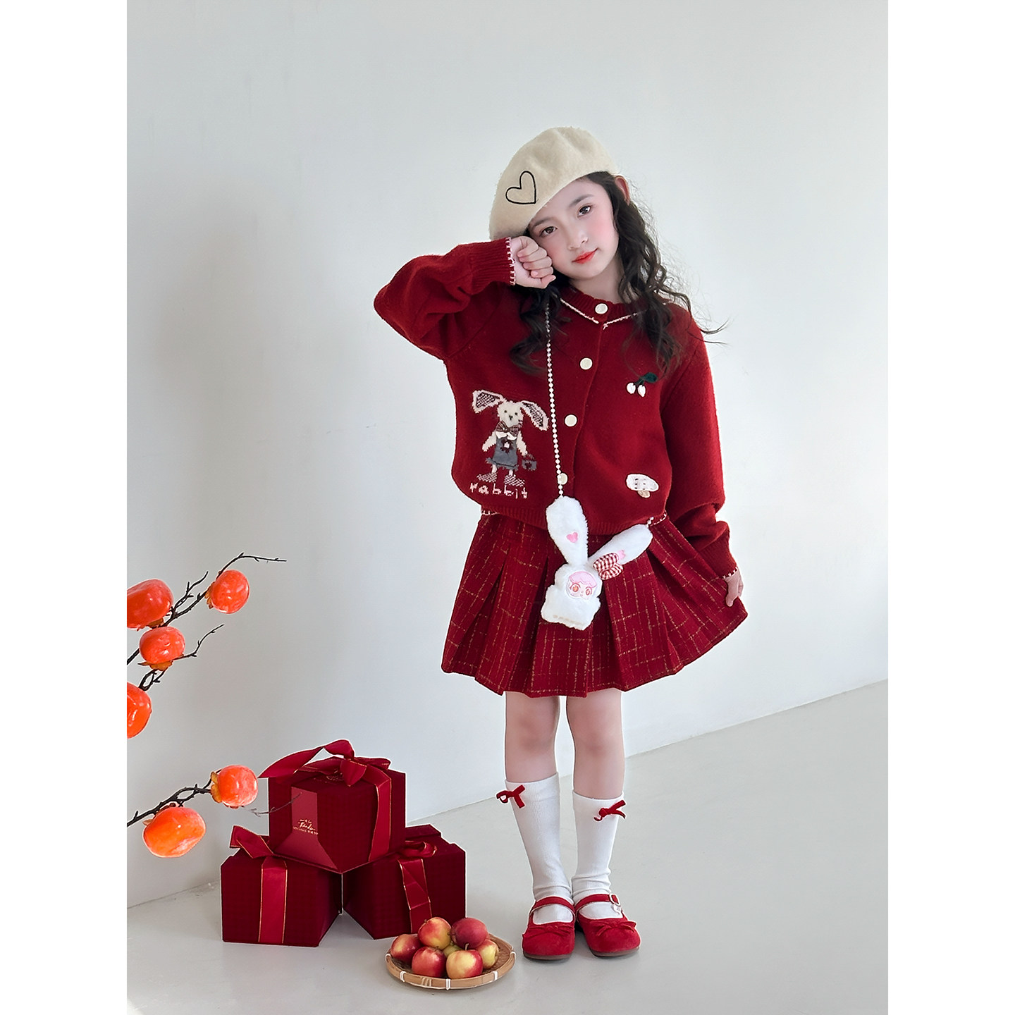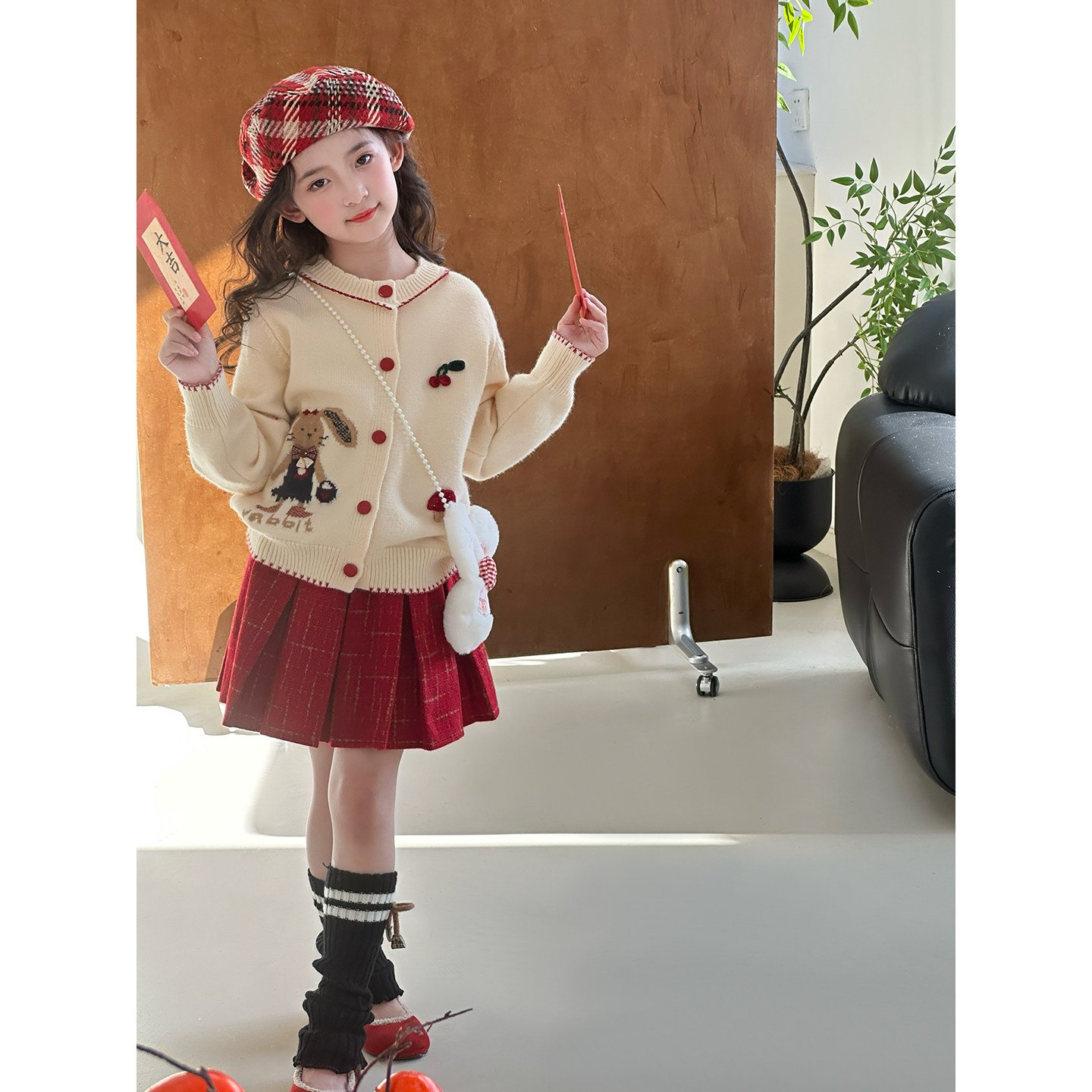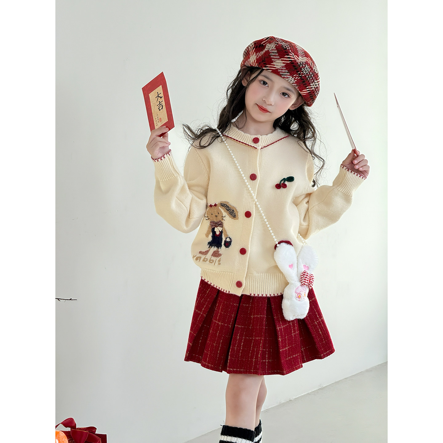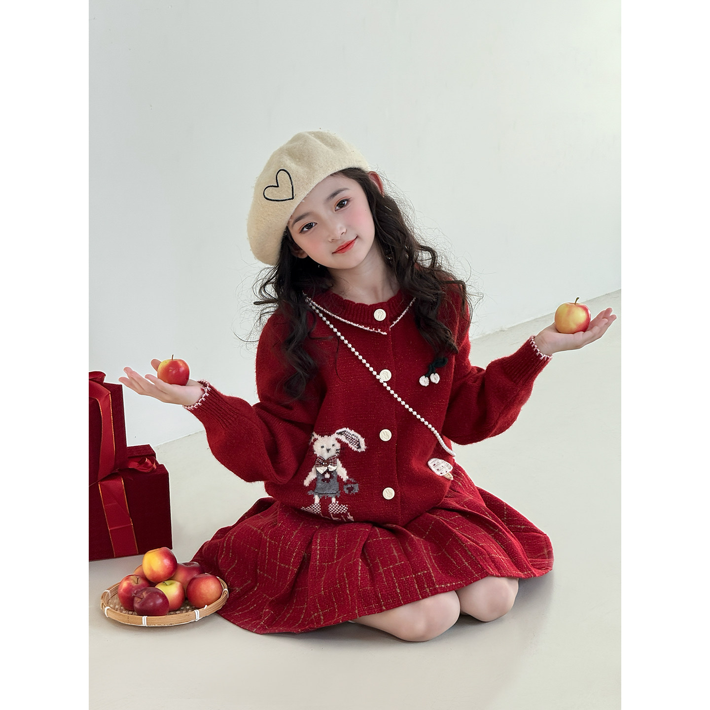 女童套装2025冬季新款儿童拜年服洋气女孩加厚针织开衫毛衣半身裙