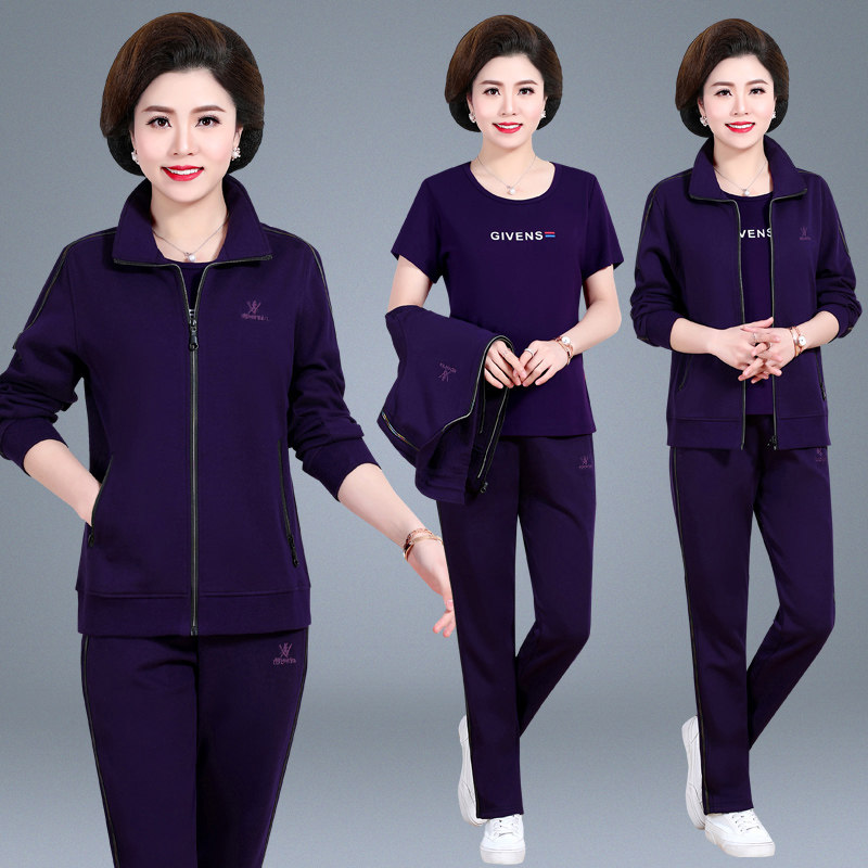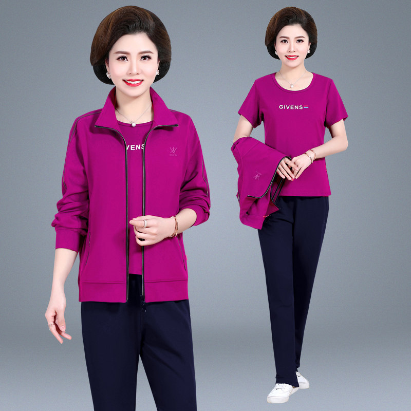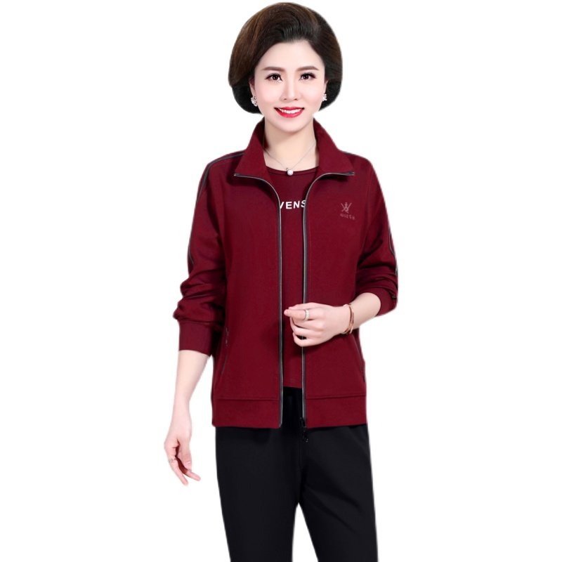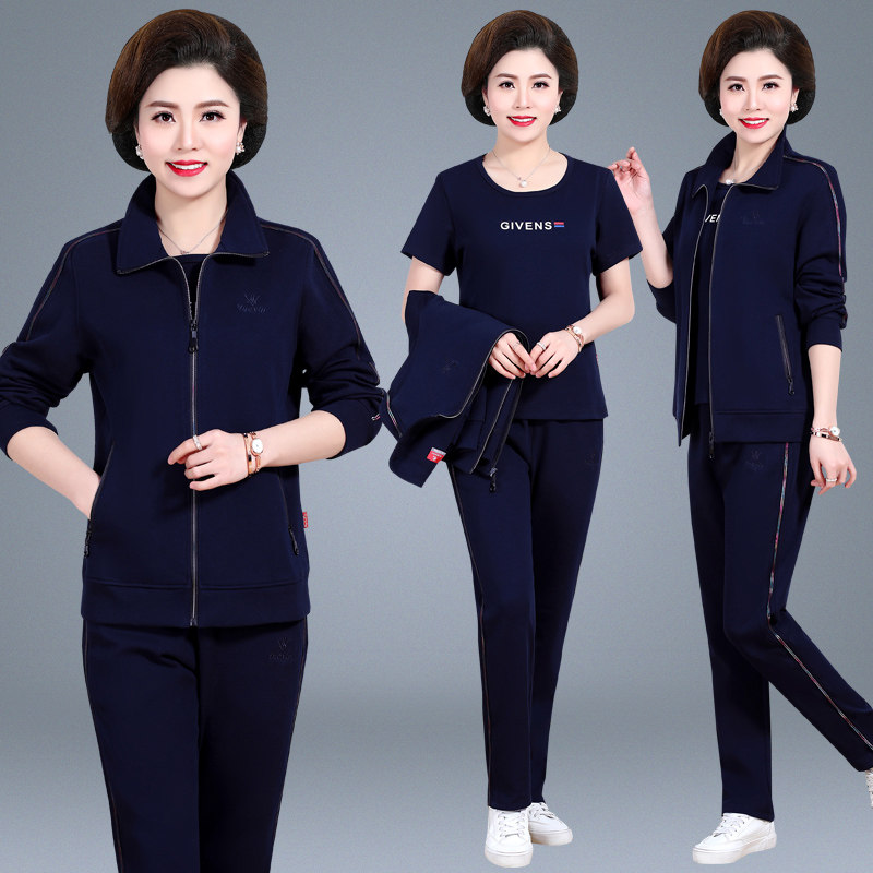中老年女装妈妈外套春装休闲运动服大码老人奶奶减龄上衣三件套装