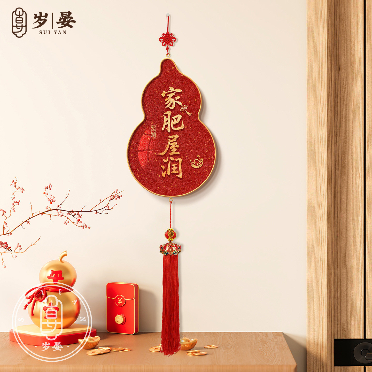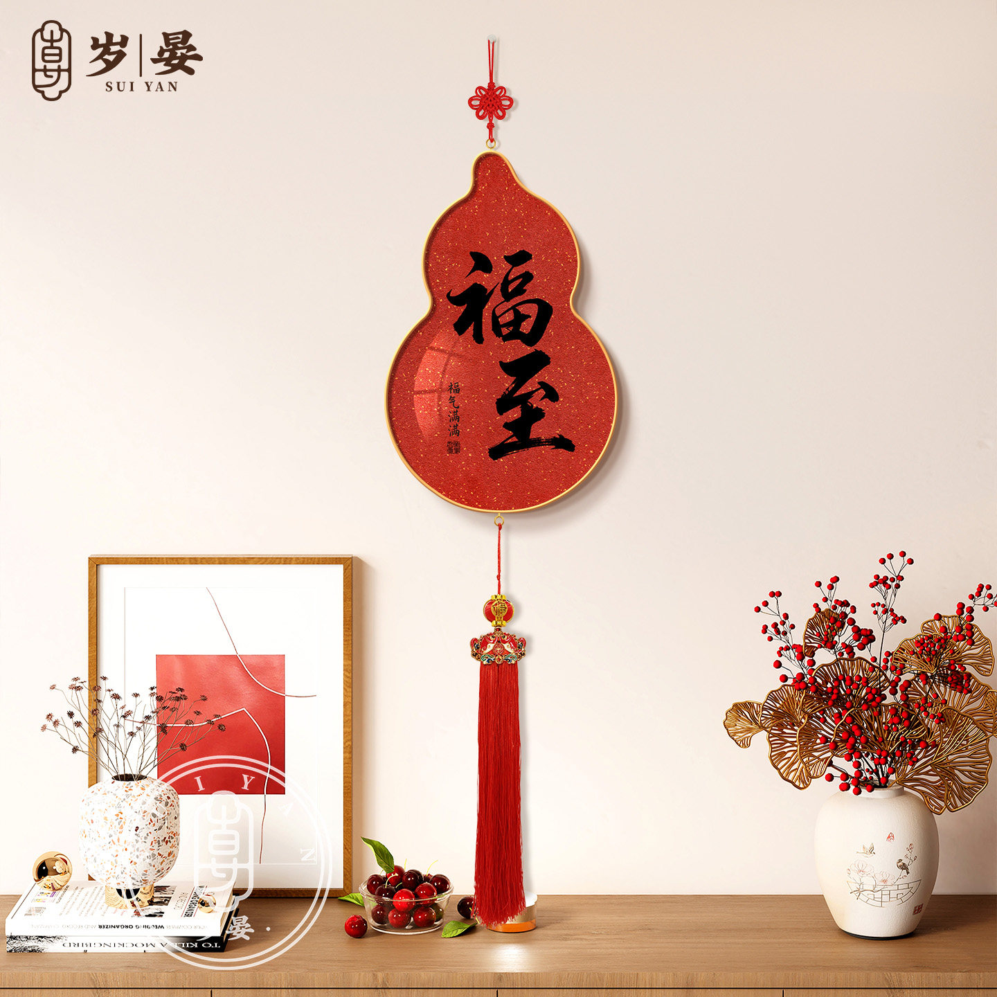 福旺人顺葫芦挂饰餐厅客厅背景墙面新中式装饰画2026新年吉祥挂件