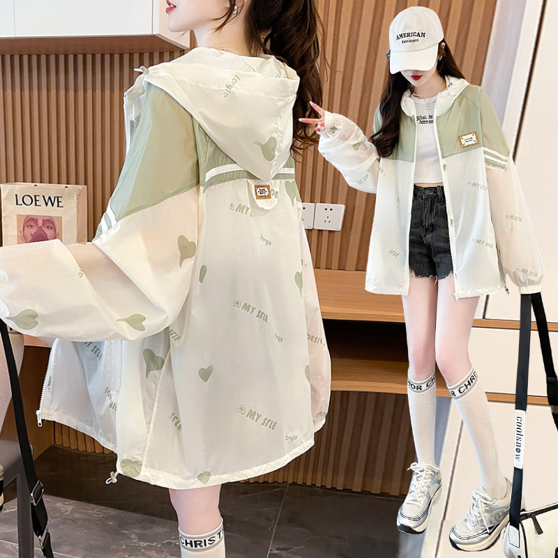初中学生夏季薄款防晒衣外套少女孩大童宽松冲锋衣防晒服百搭风衣