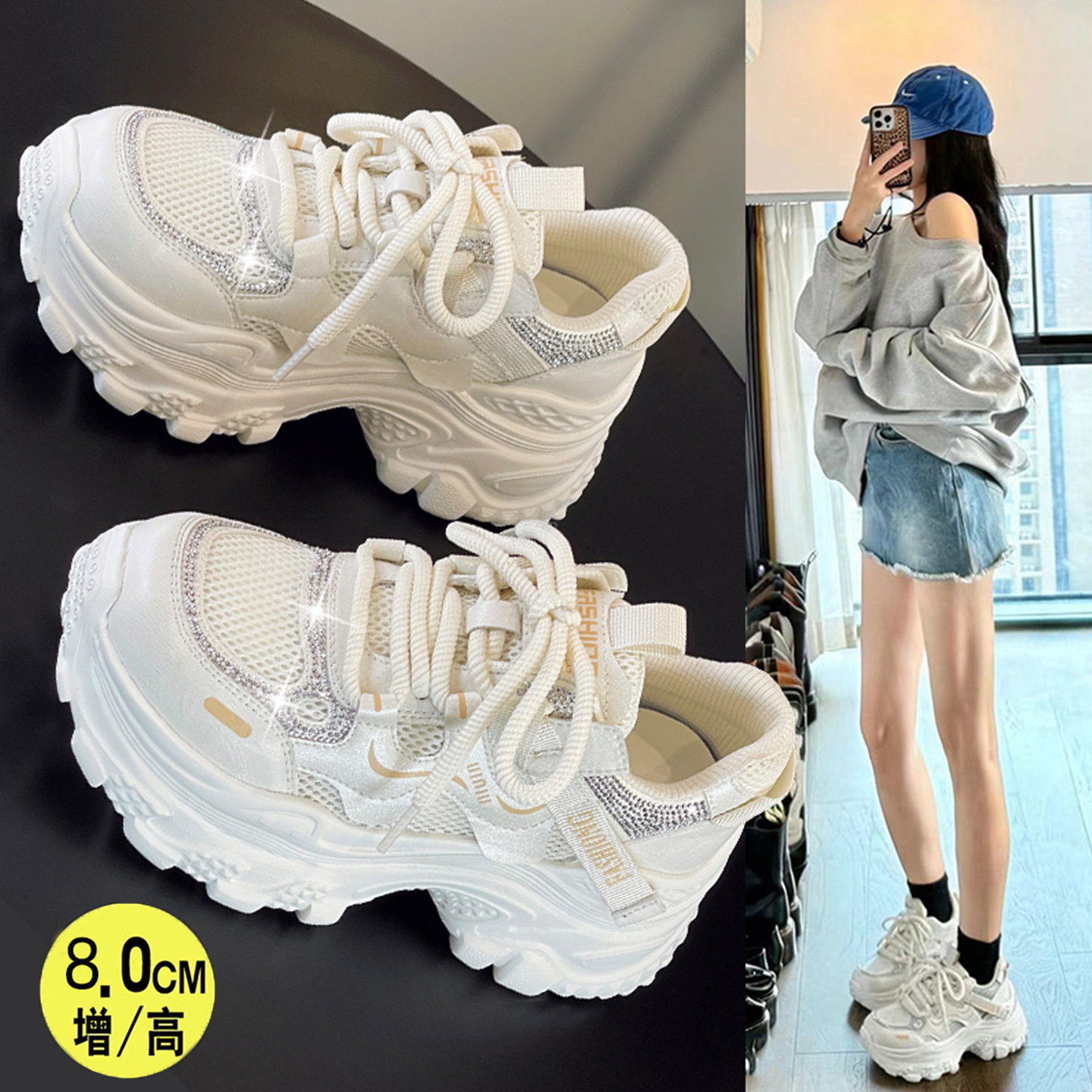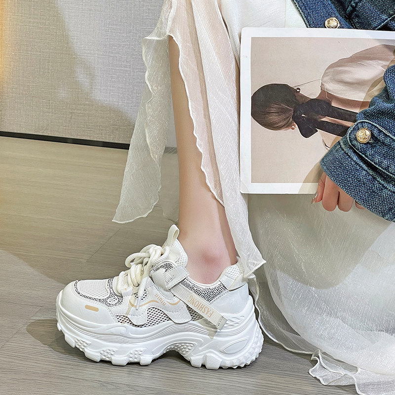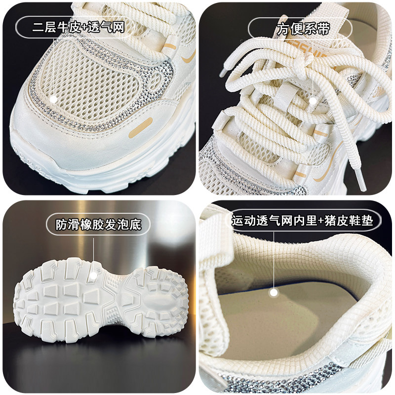 厚底老爹鞋女款2026新款运动鞋女夏薄款透气不闷脚真皮内增高女鞋