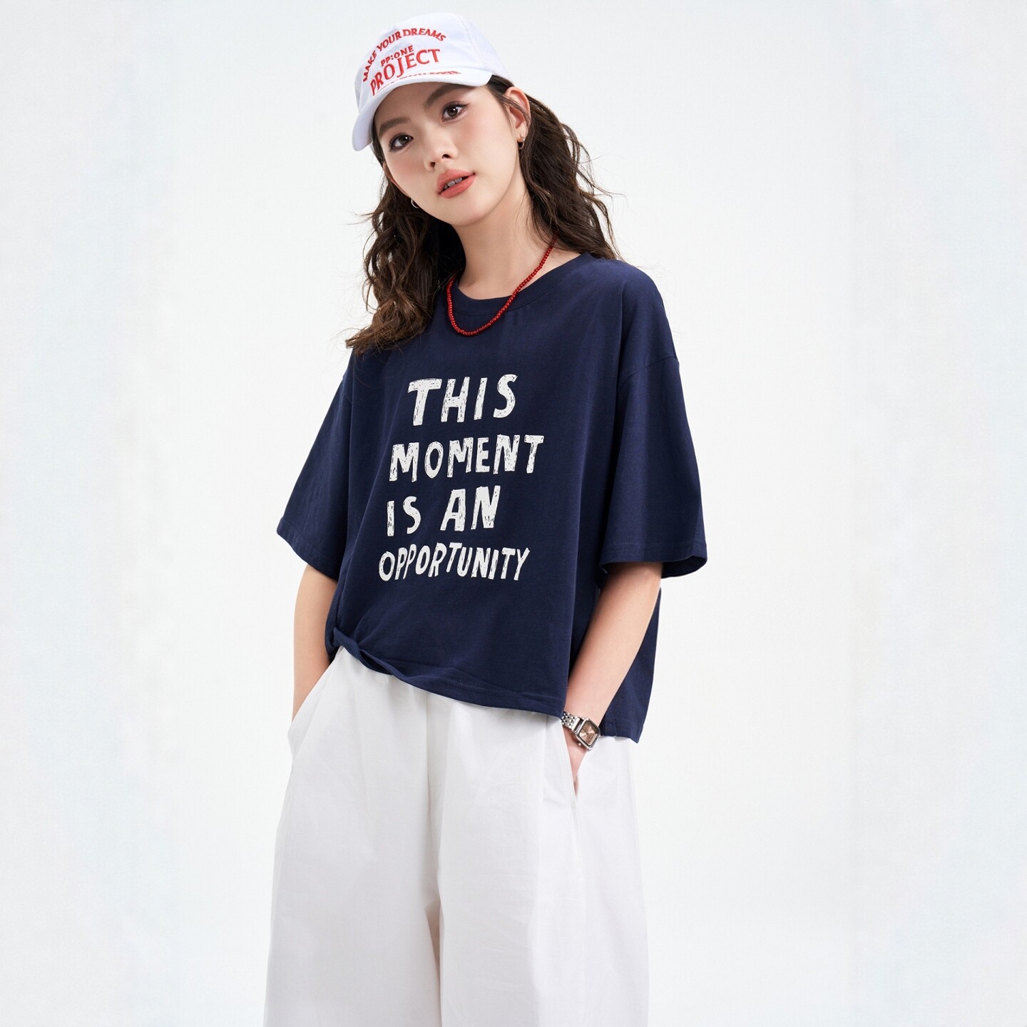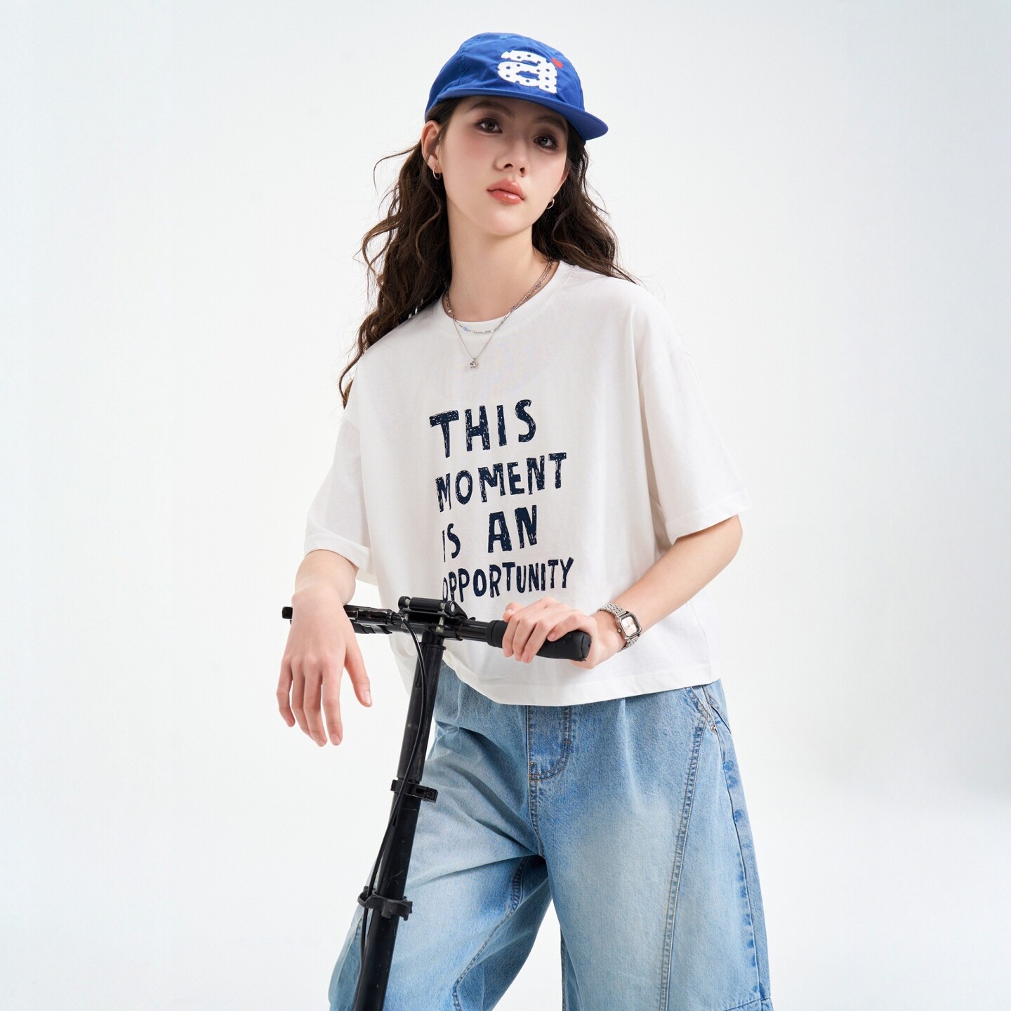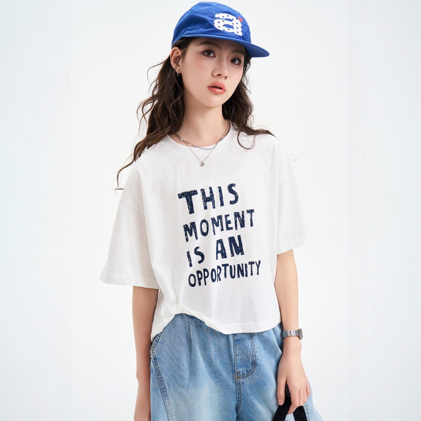 短袖圆领针织字母T恤衫短款休闲女大童青少年装艾米可多夏季新款