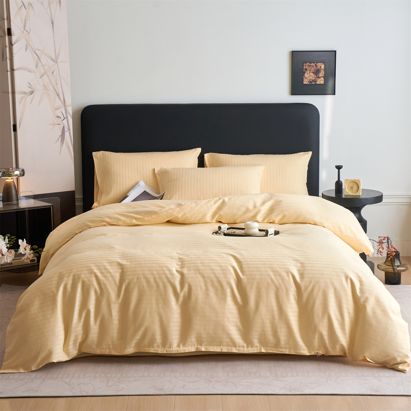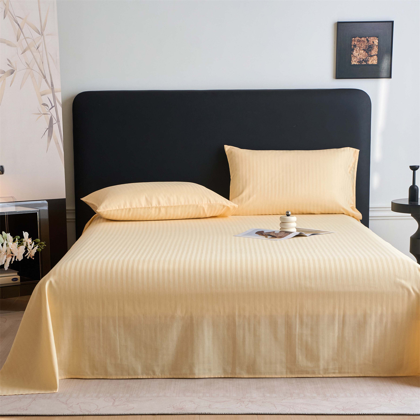 2026新款全棉纯棉纯色贡缎缎条四件套三件套床单被罩四季通用