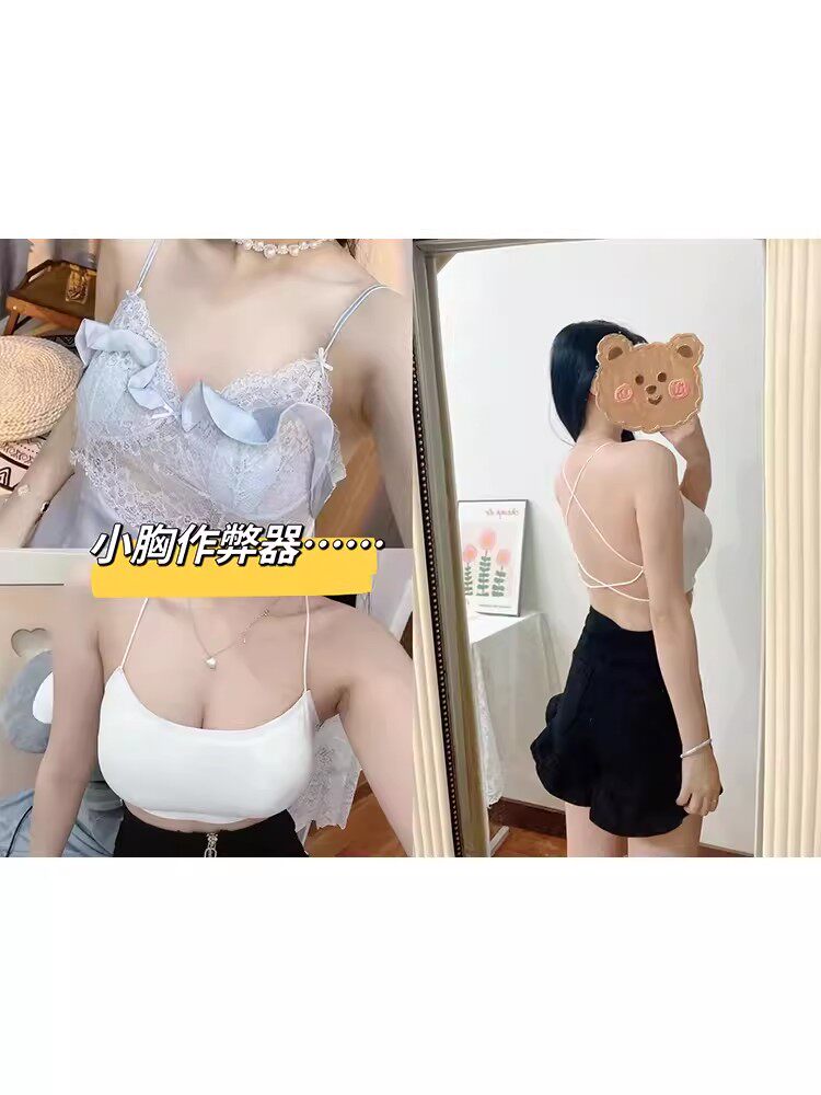 美背内衣加厚吊带小背心夏季超厚8CM聚拢小胸一体带胸垫文胸裹胸