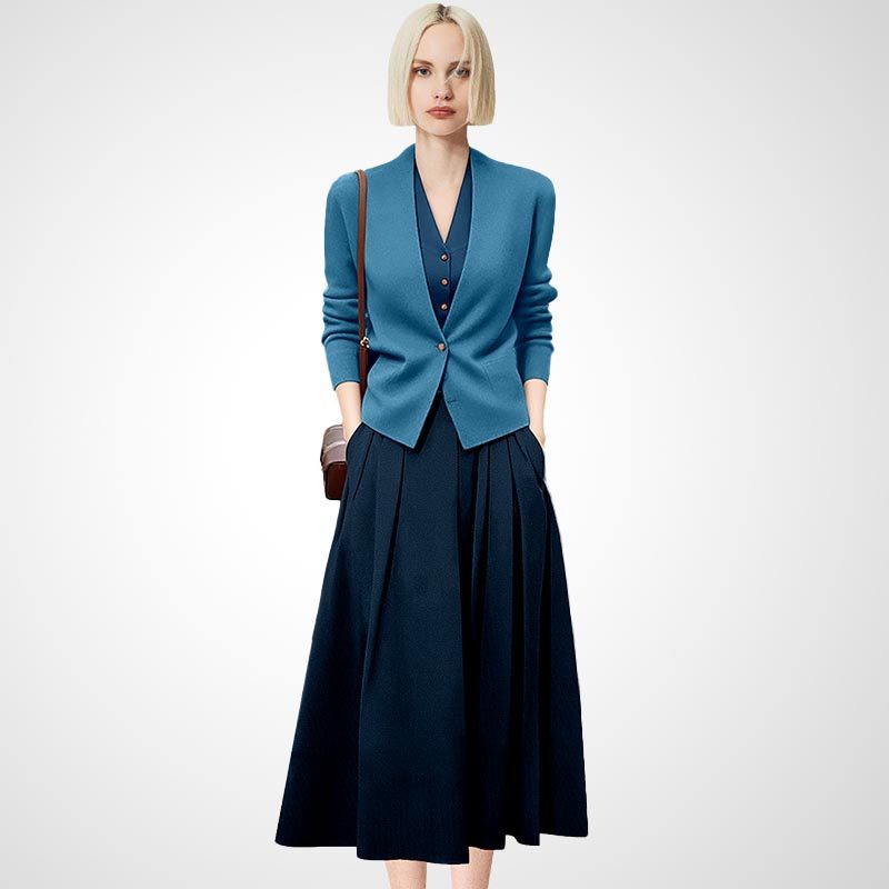 时尚洋气优雅套装裙2026年春季新款开衫外套背心连衣裙两件套女装