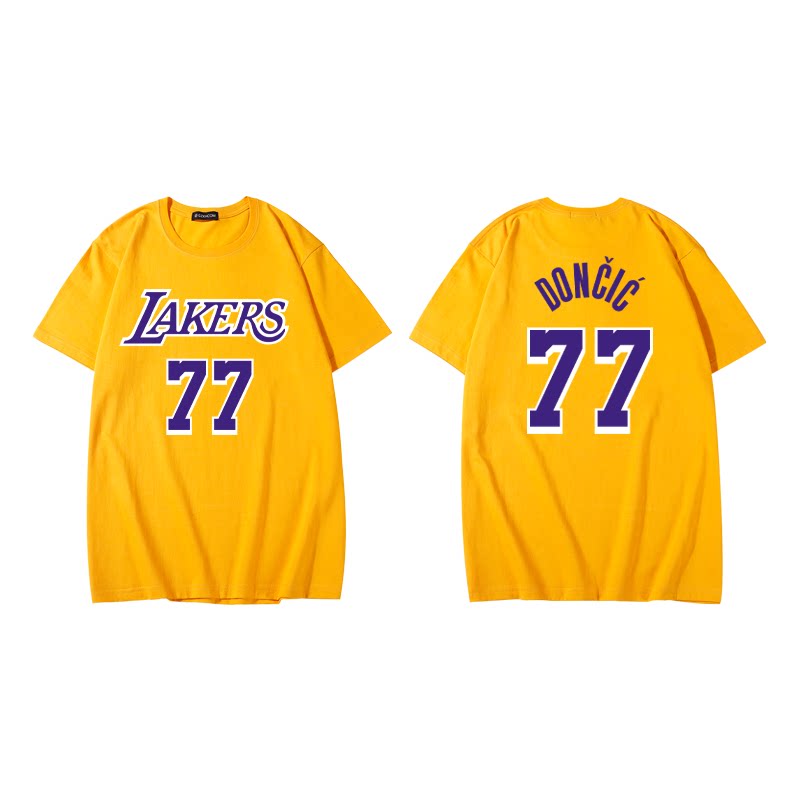 湖人詹姆斯卢卡东契奇77球衣版短袖T恤纯棉宽松半袖衫篮球运动衣