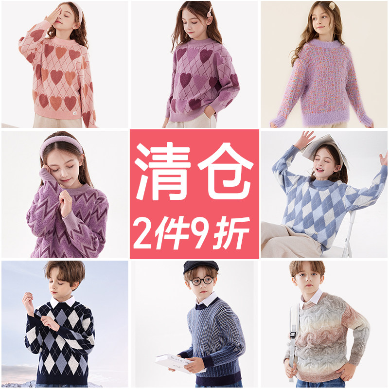 清仓男女童毛衣秋冬款儿童针织打底衫上衣中大童保暖加绒加厚线衣