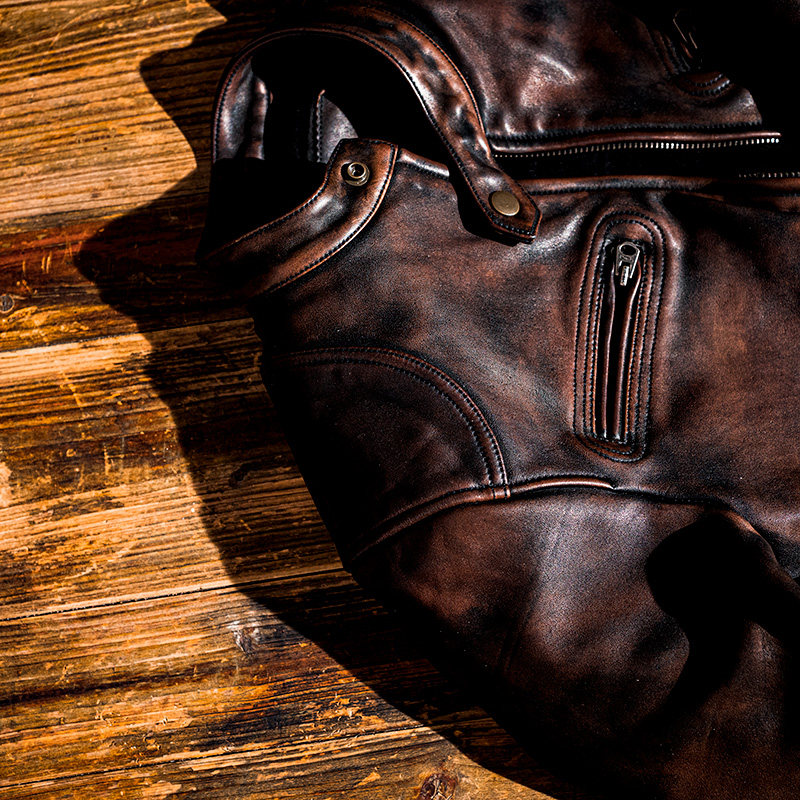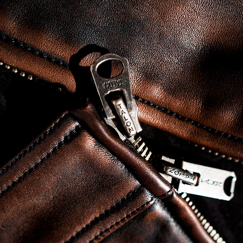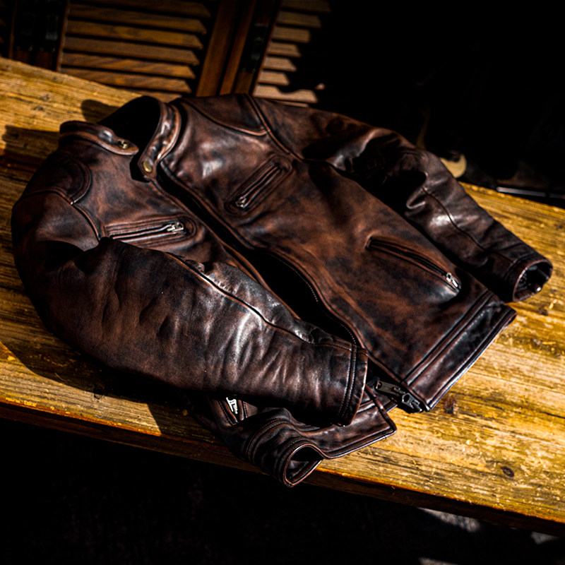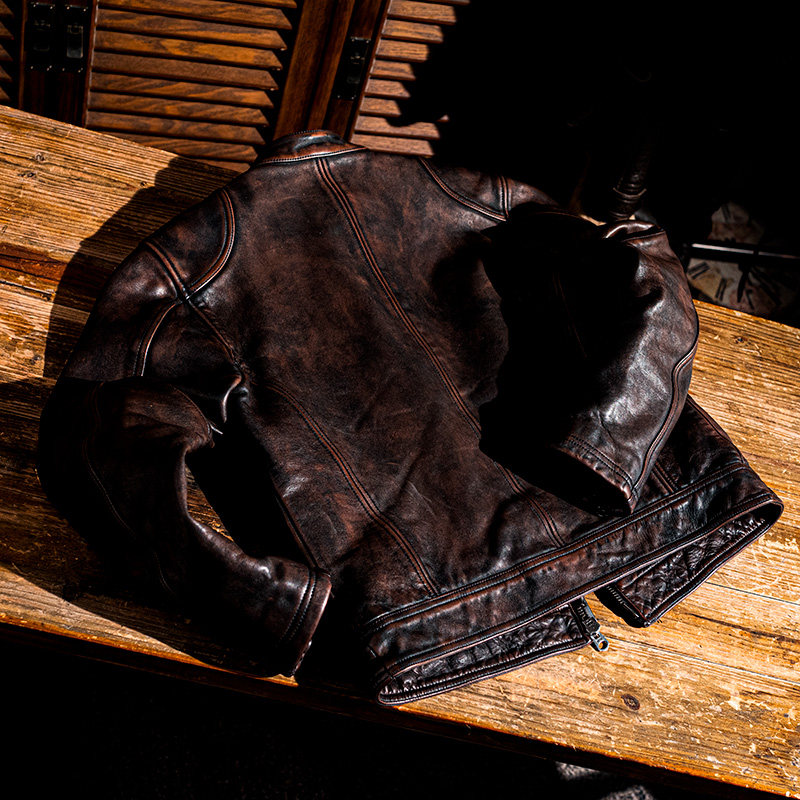 男士茶芯马皮水洗褪色做旧立领拉链男士真皮皮衣外套 机车G2062