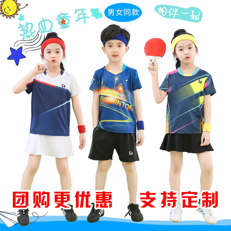 团购羽毛球服速干夏季套装男童女童裤裙运动小学生班服乒乓球衣