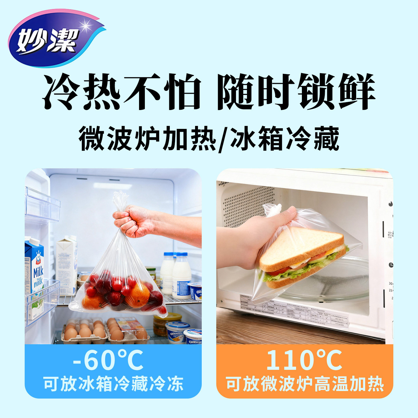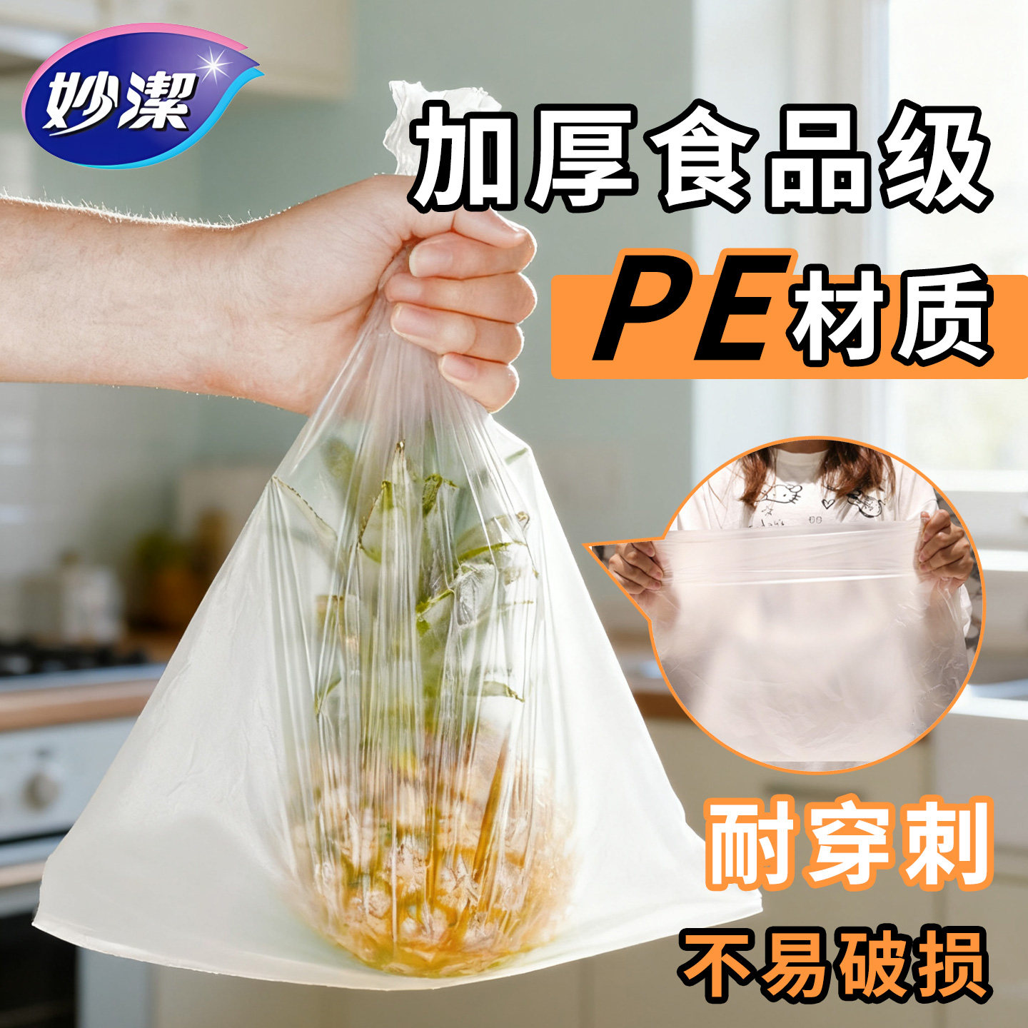 妙洁加厚保鲜袋食品级家用一次性塑料袋厨房微波炉冰箱专用食品袋