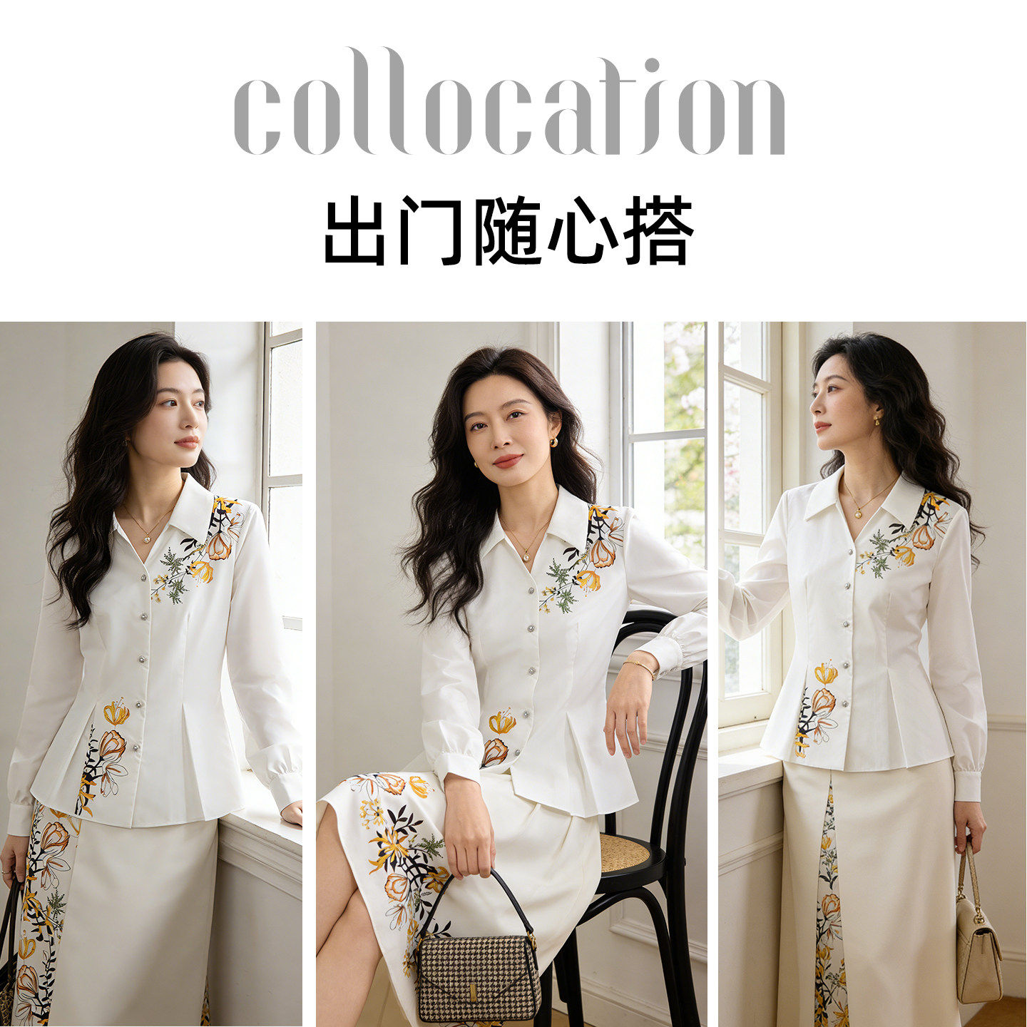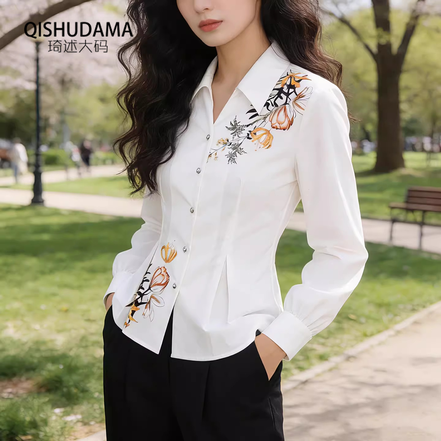 设计感印花白衬衫女早春装2026新款职业气质衬衣时尚通勤减龄上衣