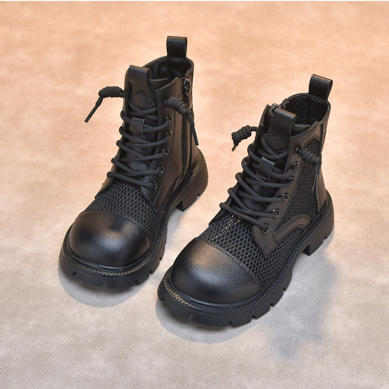 女童鞋2023新款夏季儿童马丁靴镂空透J气薄款网靴黑色软底男童短