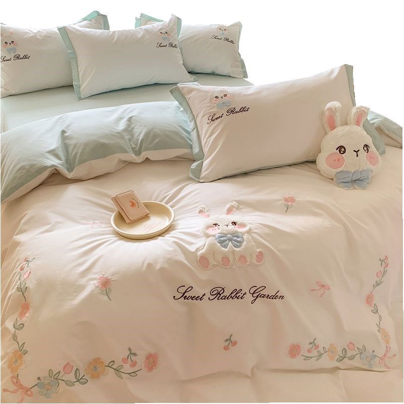 可爱少女心全棉四件套纯棉长绒棉卡通儿童高级感床上用品床单被套