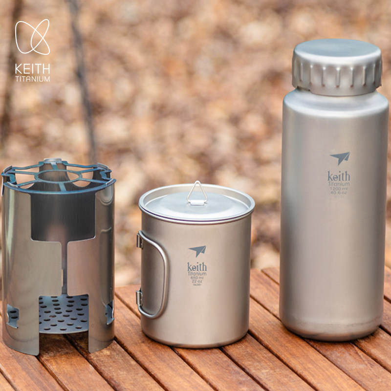 KEITH铠斯纯钛宽口壶户外运动水壶轻质便携式大容量水杯送水壶套