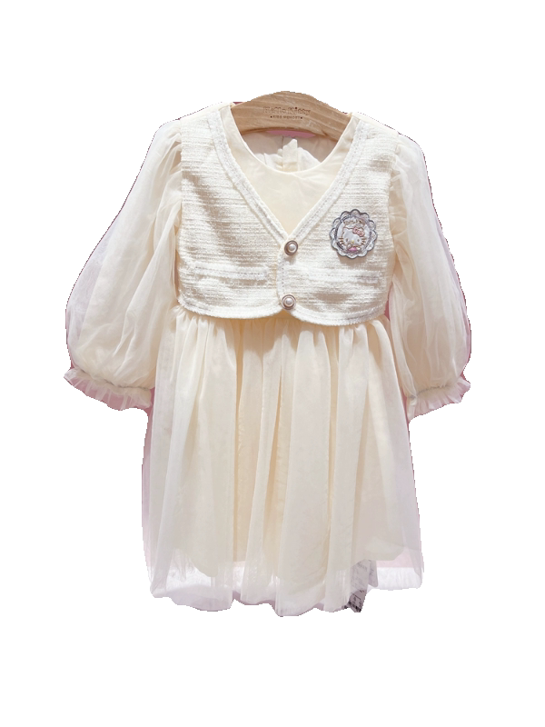 Hello kitty专柜正品早春款中大童女童假两件小香风长袖连衣裙