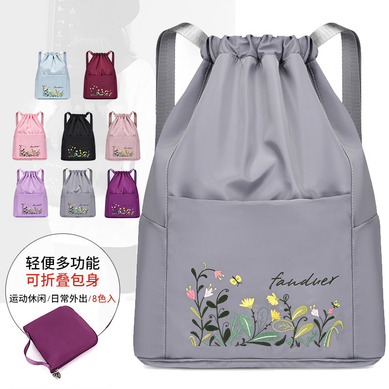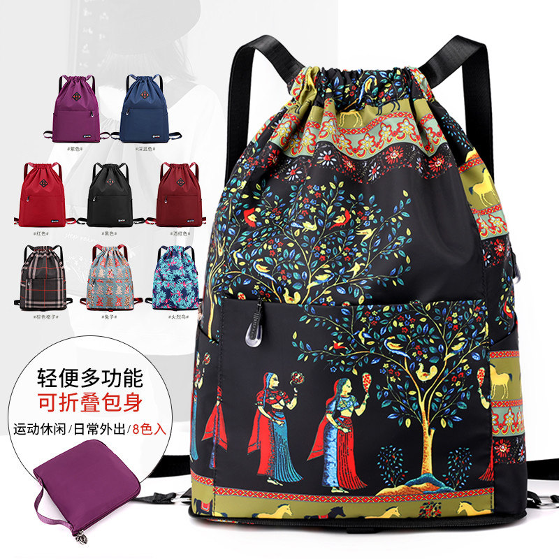 折叠双肩包超轻便携收纳束口抽绳带背包女大容量运动旅行防水书包