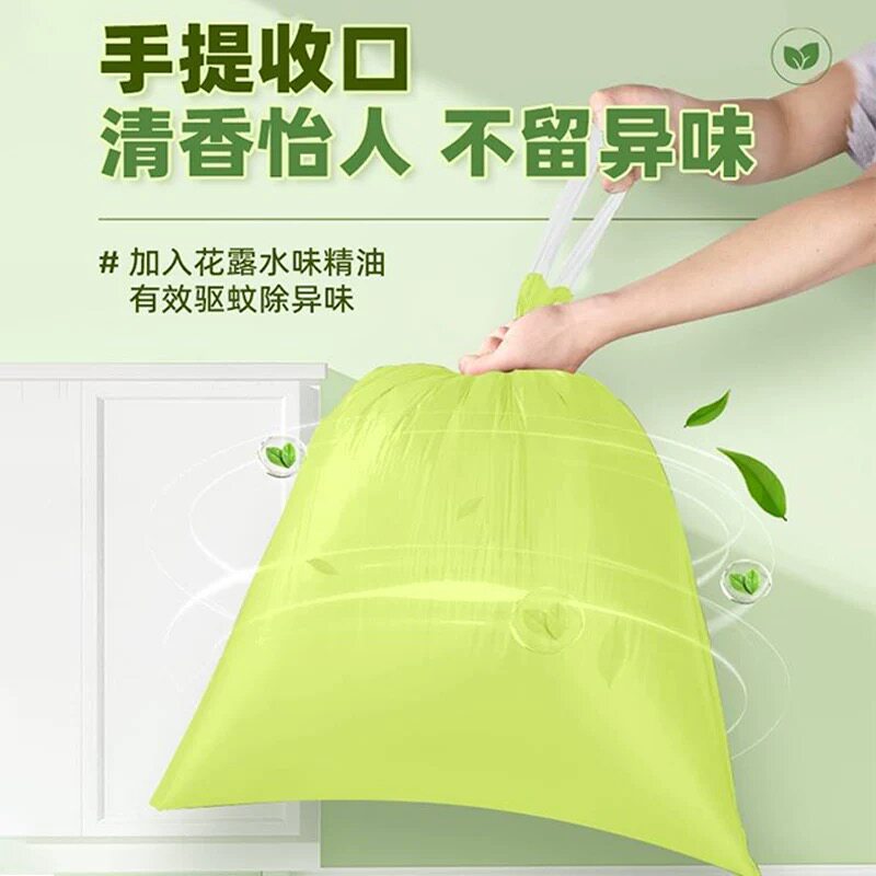 艾草驱蚊垃圾袋抽绳式飞虫家用厨房手提式加厚大卷印花抽绳塑料袋