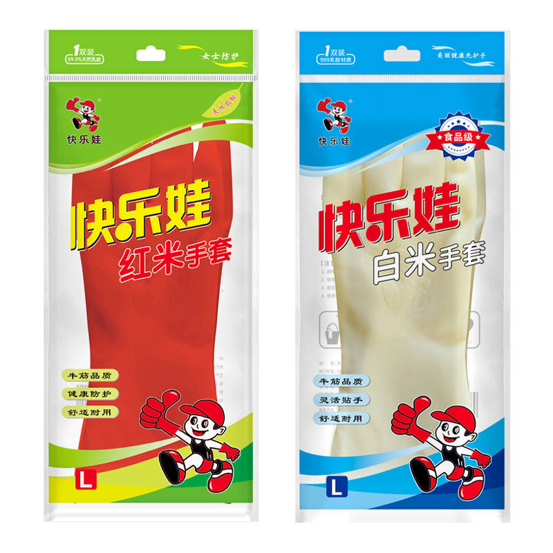 正品快乐娃红米白米家用橡胶耐磨乳胶家务手套女洗衣洗碗防滑防水