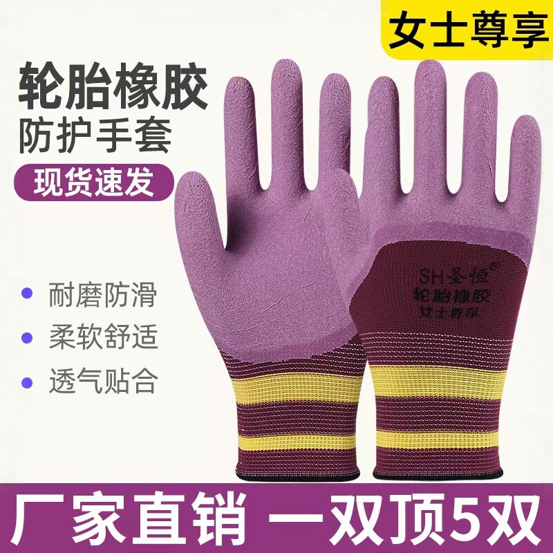 女士专用轮胎橡胶劳保手套耐磨防滑舒适透气工地小号干活工作手套