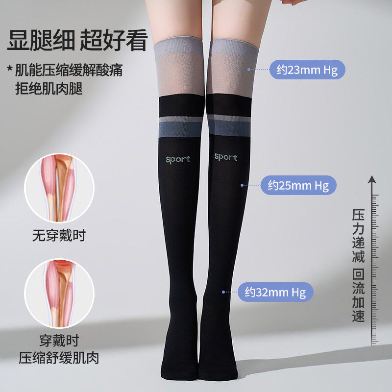 过膝袜压力瘦腿冬季长筒袜女专业马拉松跑步袜运动压缩袜羽毛球袜