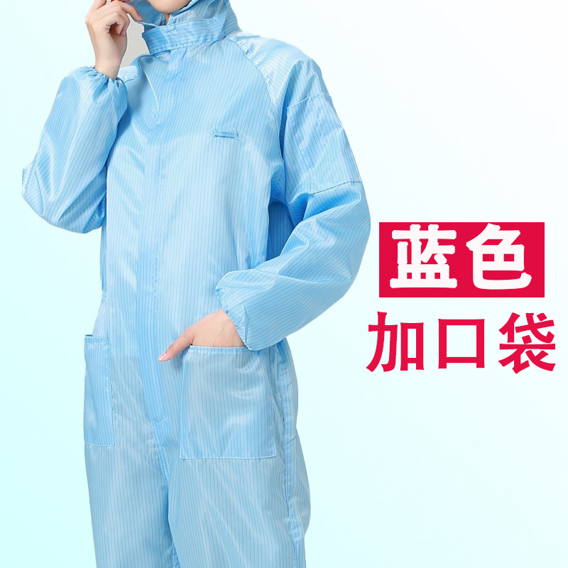 防尘连体服带口袋 车间静电服 喷漆无尘服 防静电连帽连体 工作服