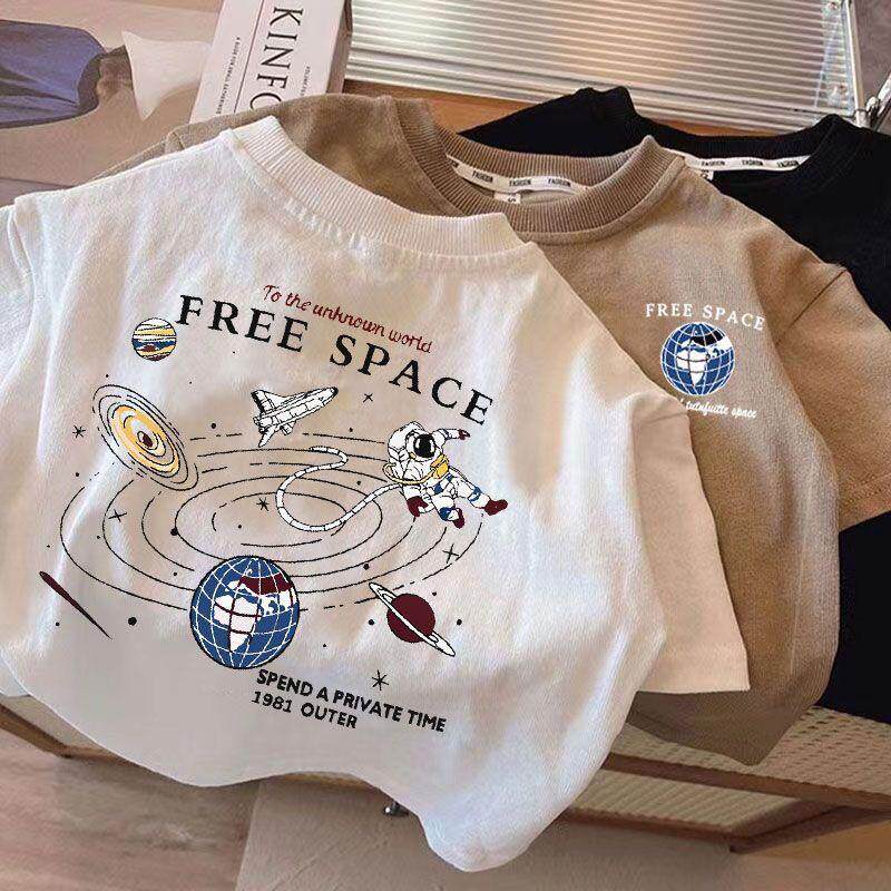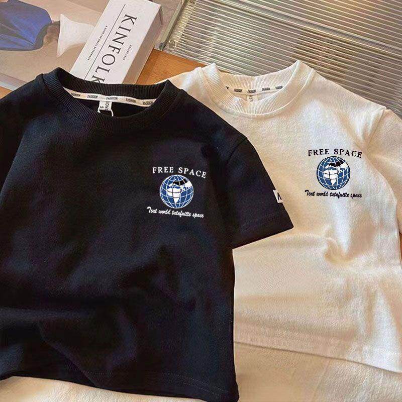 纯棉儿童夏季短袖T恤男童洋气圆领韩版ins印花卡通休闲潮流半袖衣